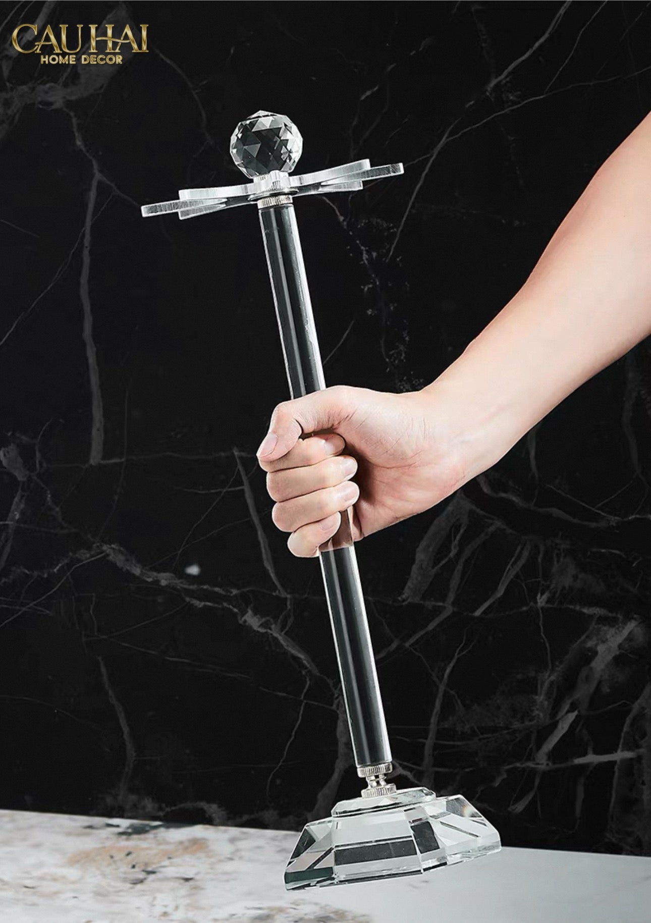 The shelf is crafted from 10mm thick high-quality crystal acrylic , transparent as glass but lighter and more durable. The sturdy central column, connecting the two floors with a chrome-plated metal shaft, allows for flexible 360° rotation - convenient for storing and retrieving items. Each detail is machined with rounded edges, ensuring safety and enhancing aesthetics. The faceted crystal knob at the top is a highlight symbolizing the spirit of Home Couture - sophisticated, luxurious and unique.