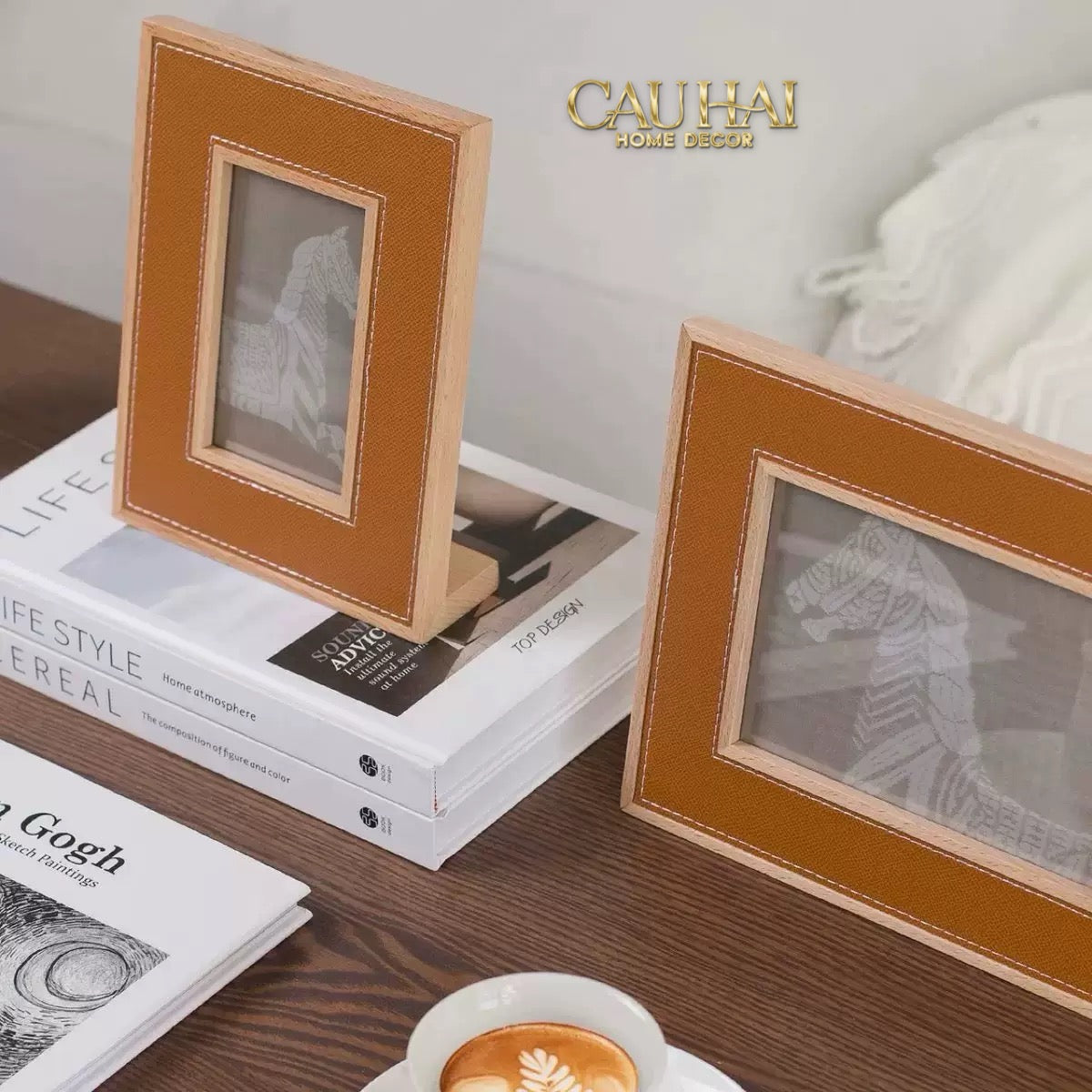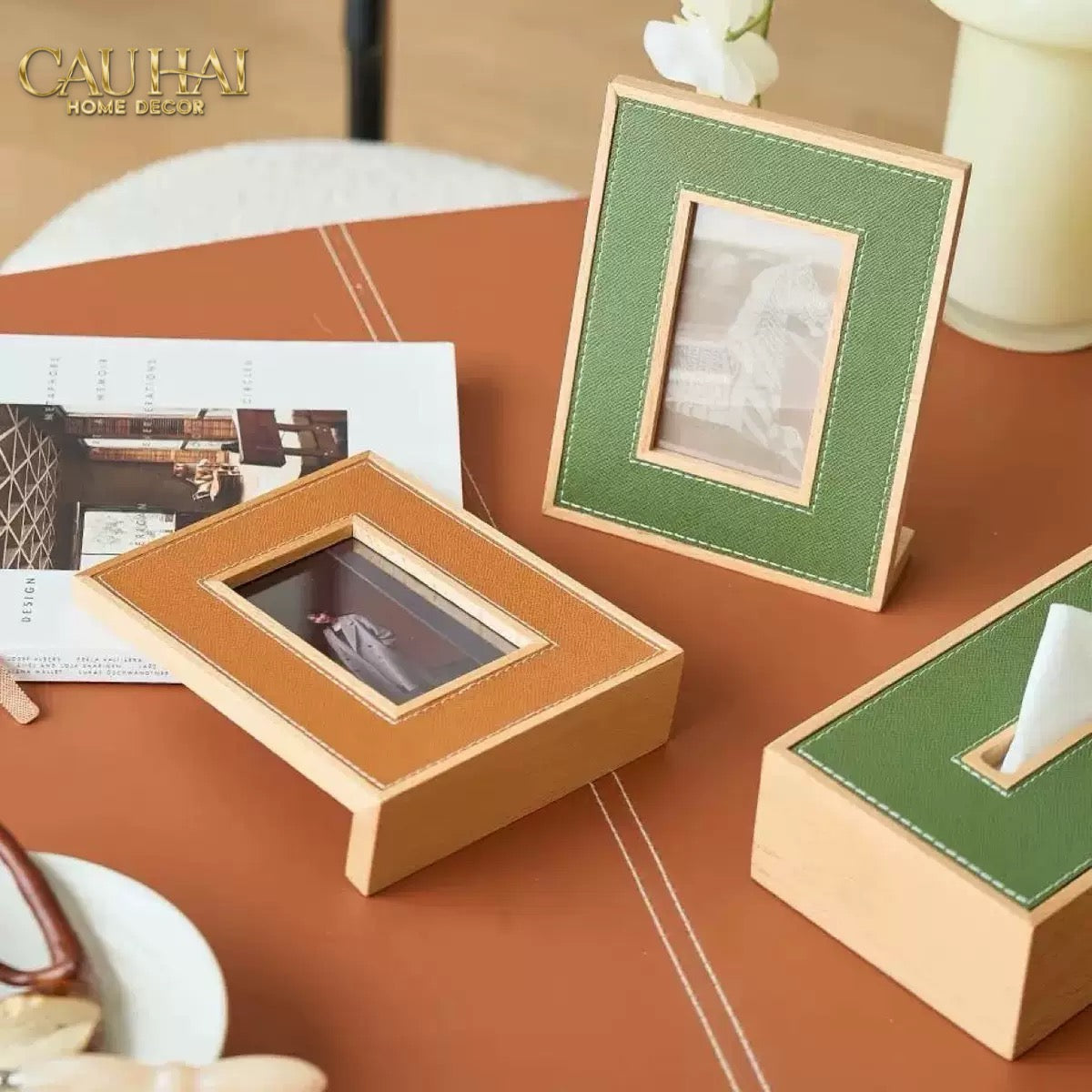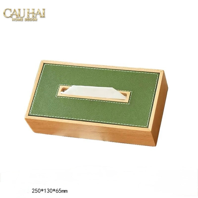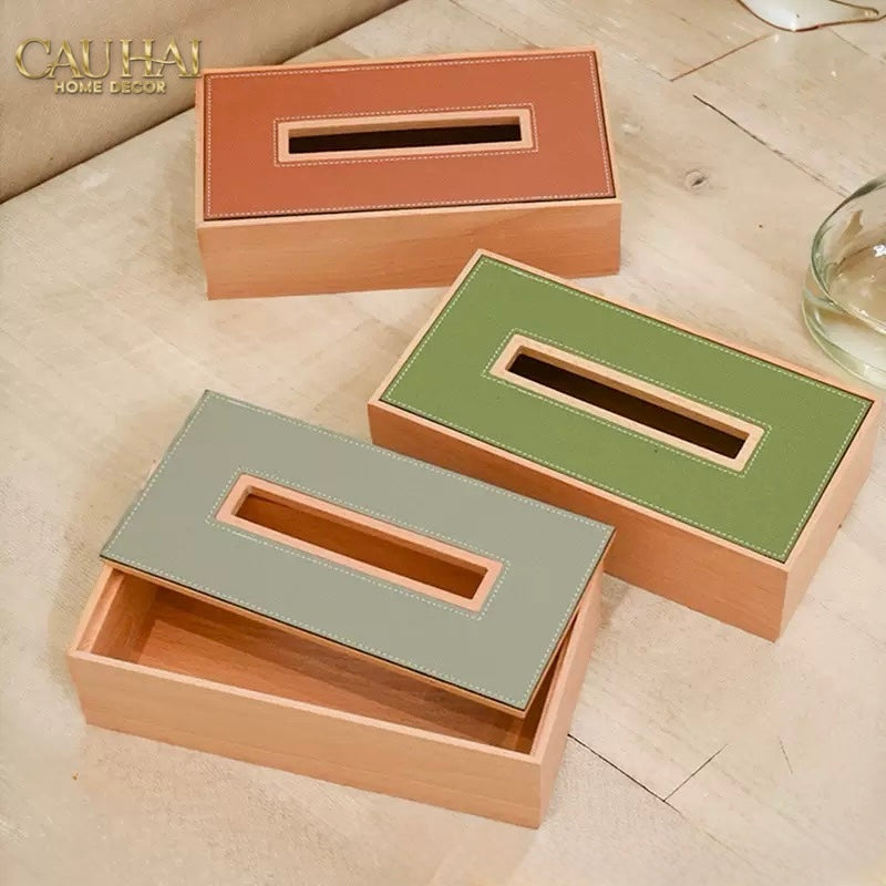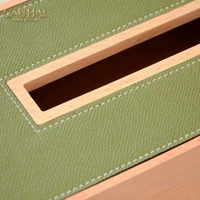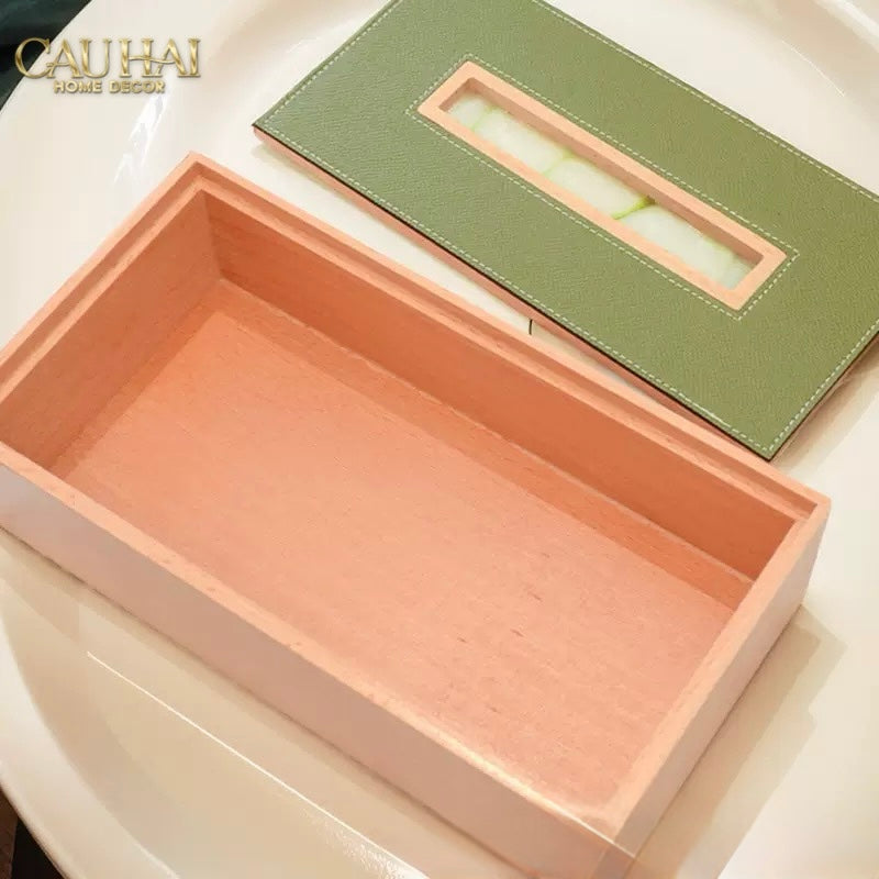 Hộp Khăn Giấy Gỗ Bọc Da Ethan Signature Atélier Luxe Leather - Sienna Orange 13x25
