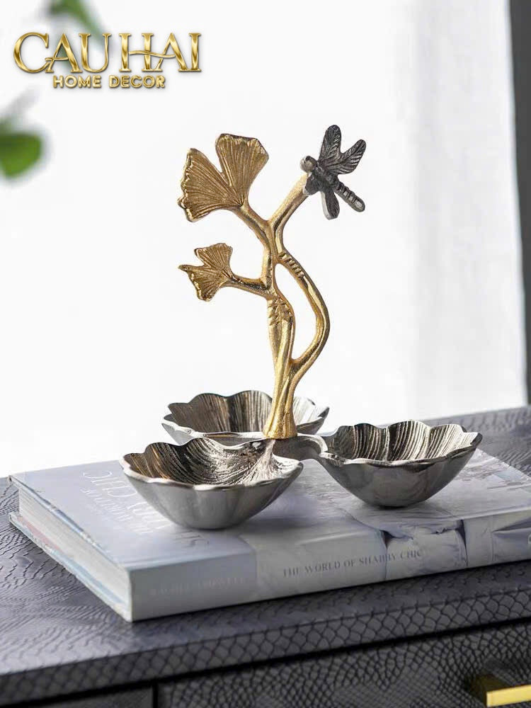 Maison Couture - Đĩa Ginkgo 3 Ngăn Triptyque · L’Atelier Ginkgo Élancé — Argenté Brass Disks