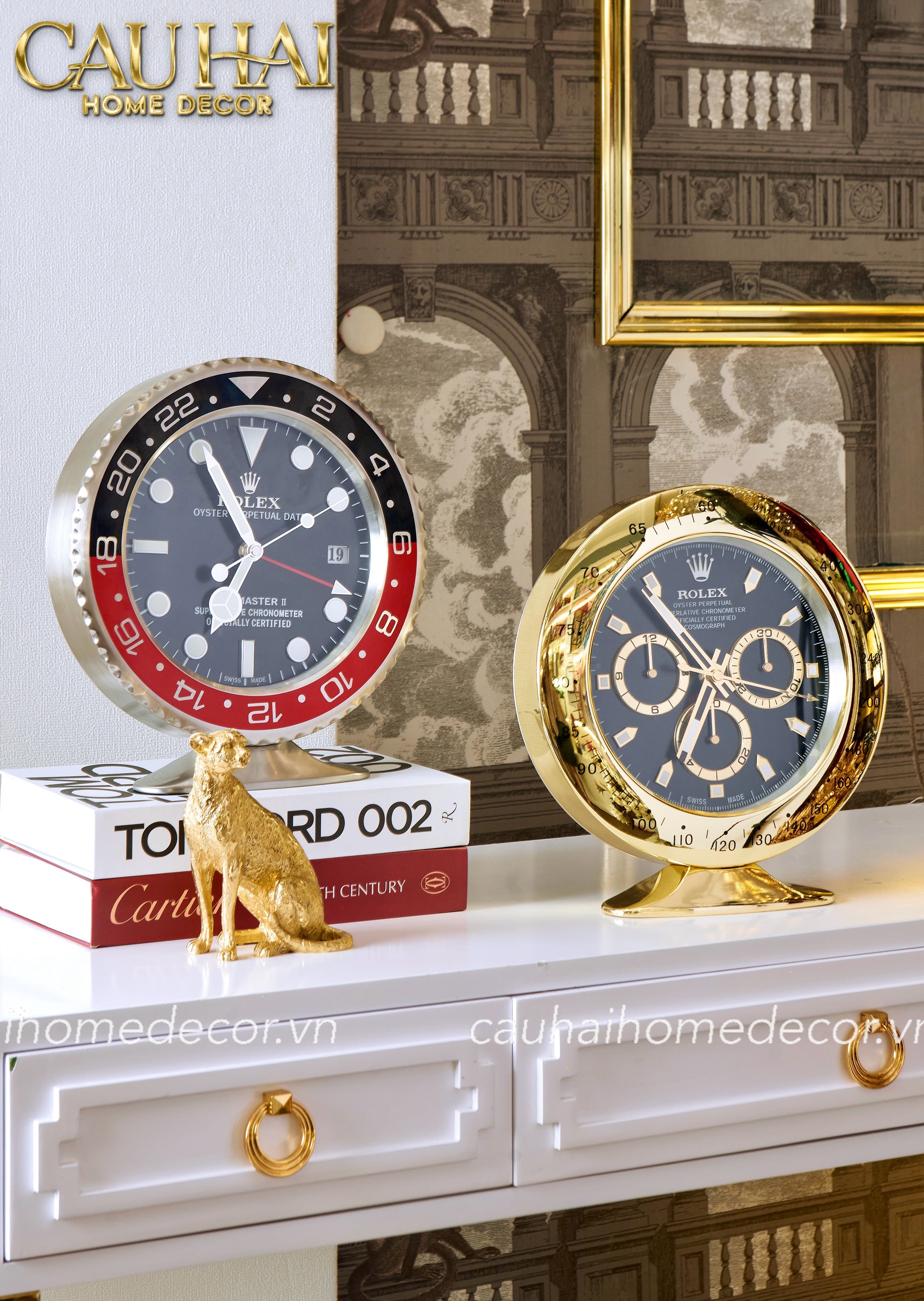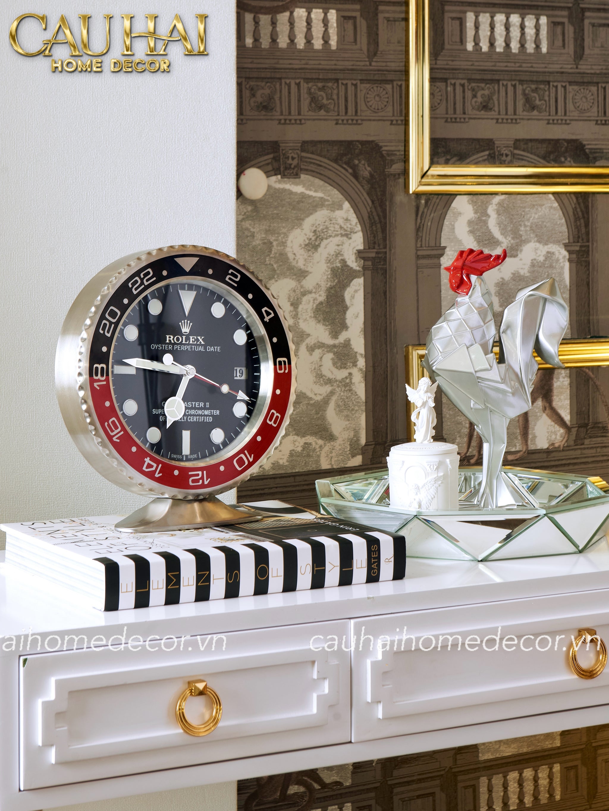 Maison Couture - Đồng Hồ Timepiece Horloge Argent Rouge Desk Clock