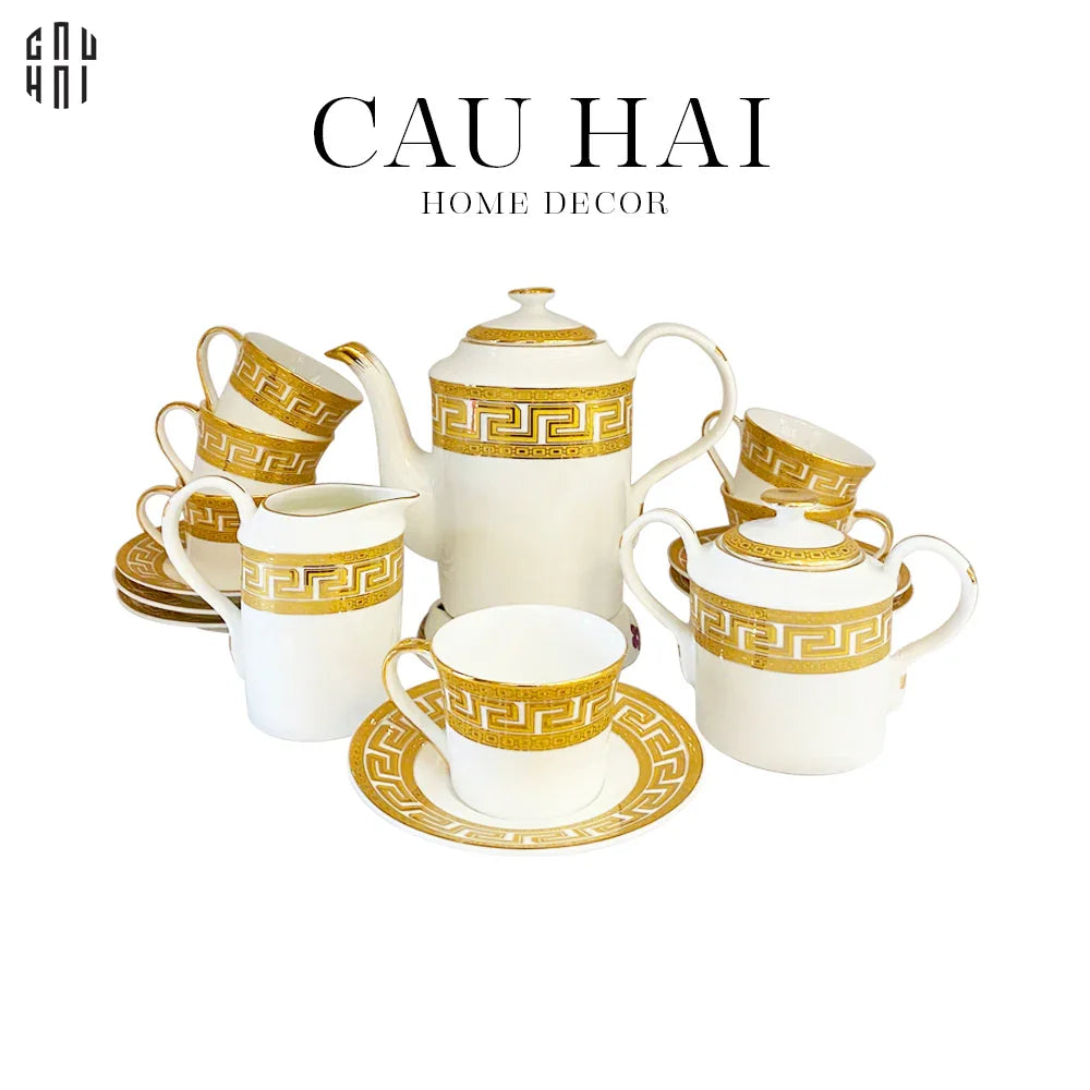 HOME COUTURE - GOLDEN GREEK KEY TEA POT SET - FULL BOX SS25