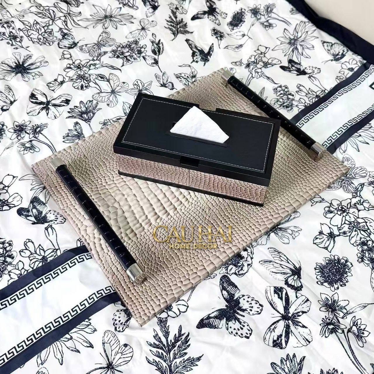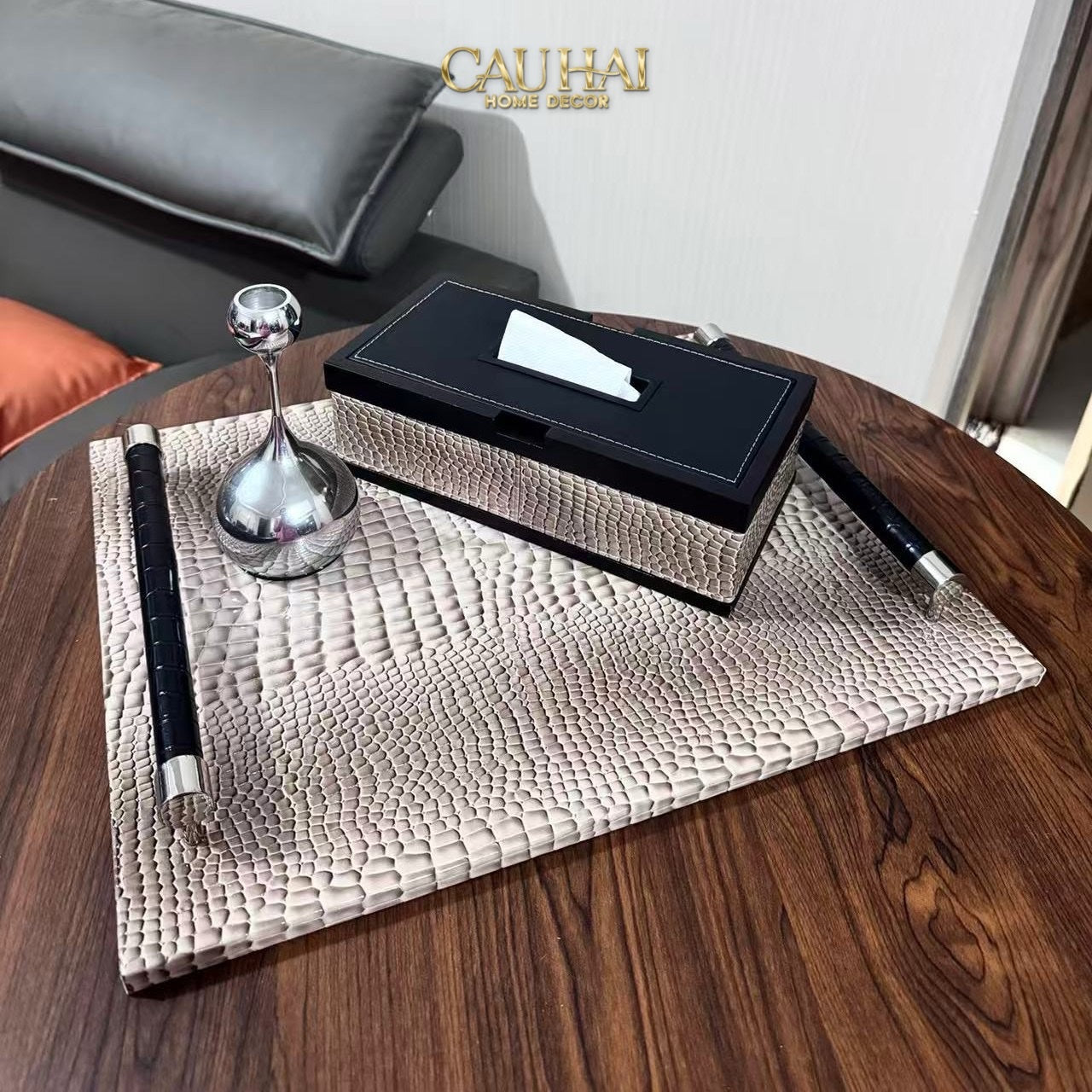 HỘP KHĂN GIẤY EMBOSS LUX CROC GRAPHITE LEATHER