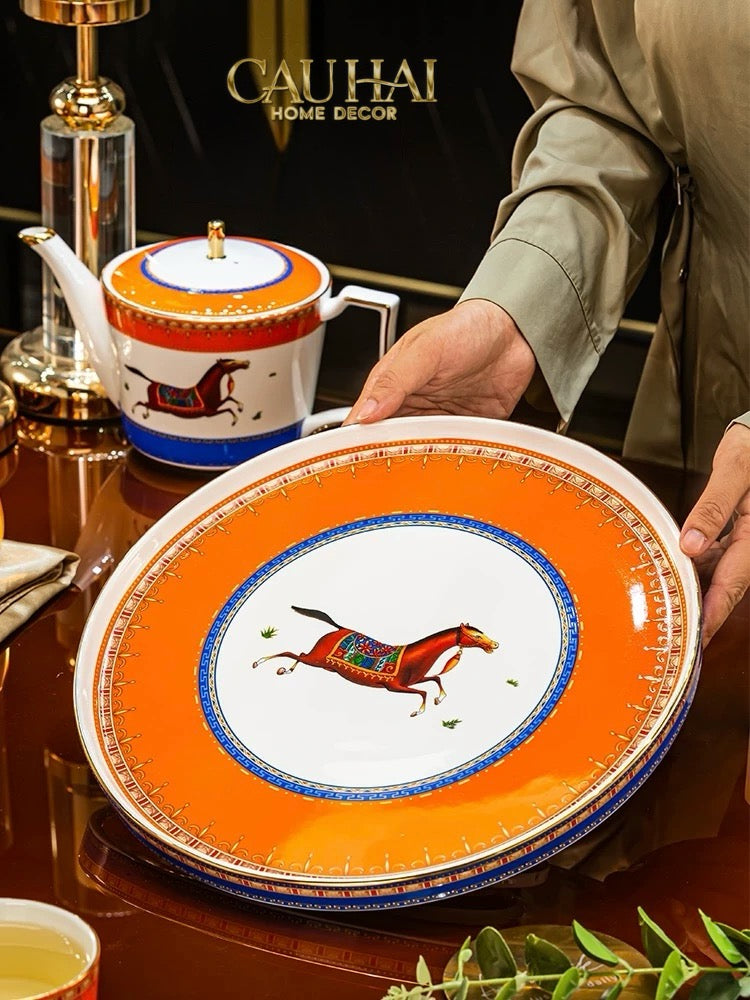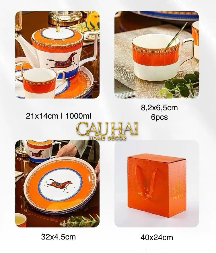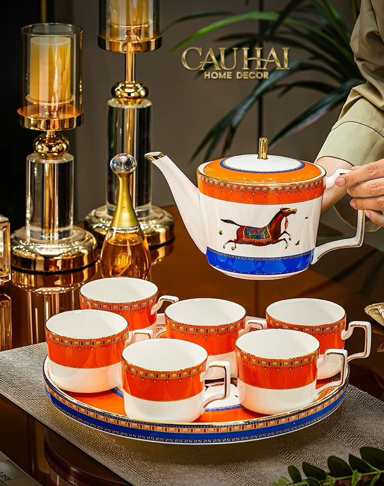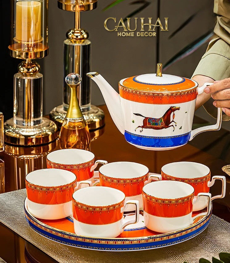 Maison Couture - Set Bình Trà & Coffee Héritage Équestre Vermillion Oriental Cheval Tea Set 8pcs