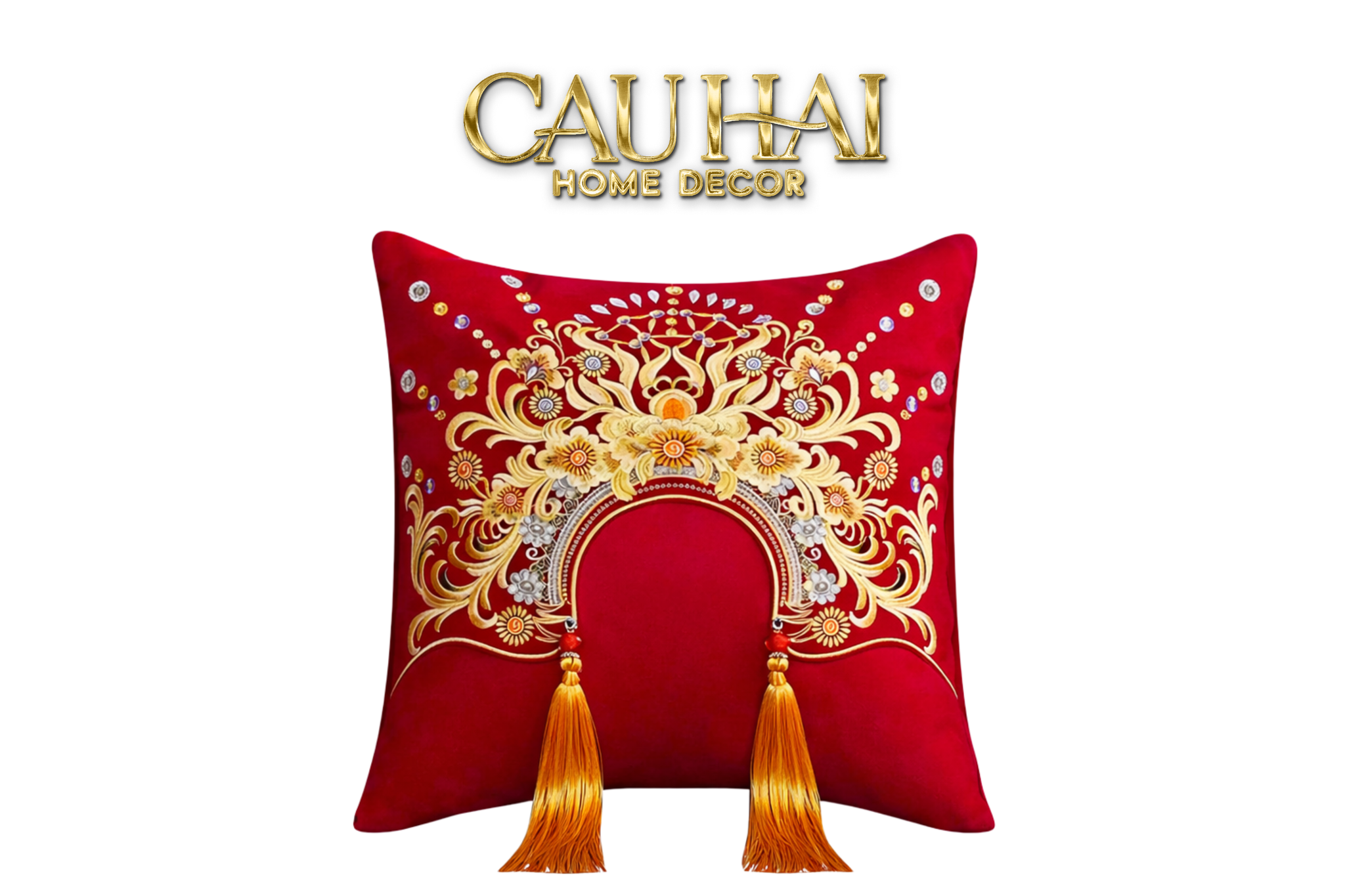 Tết Couture - Vỏ Gối Lụa Thêu - Impérial Phoenix Rouge Vermillon Empress 45