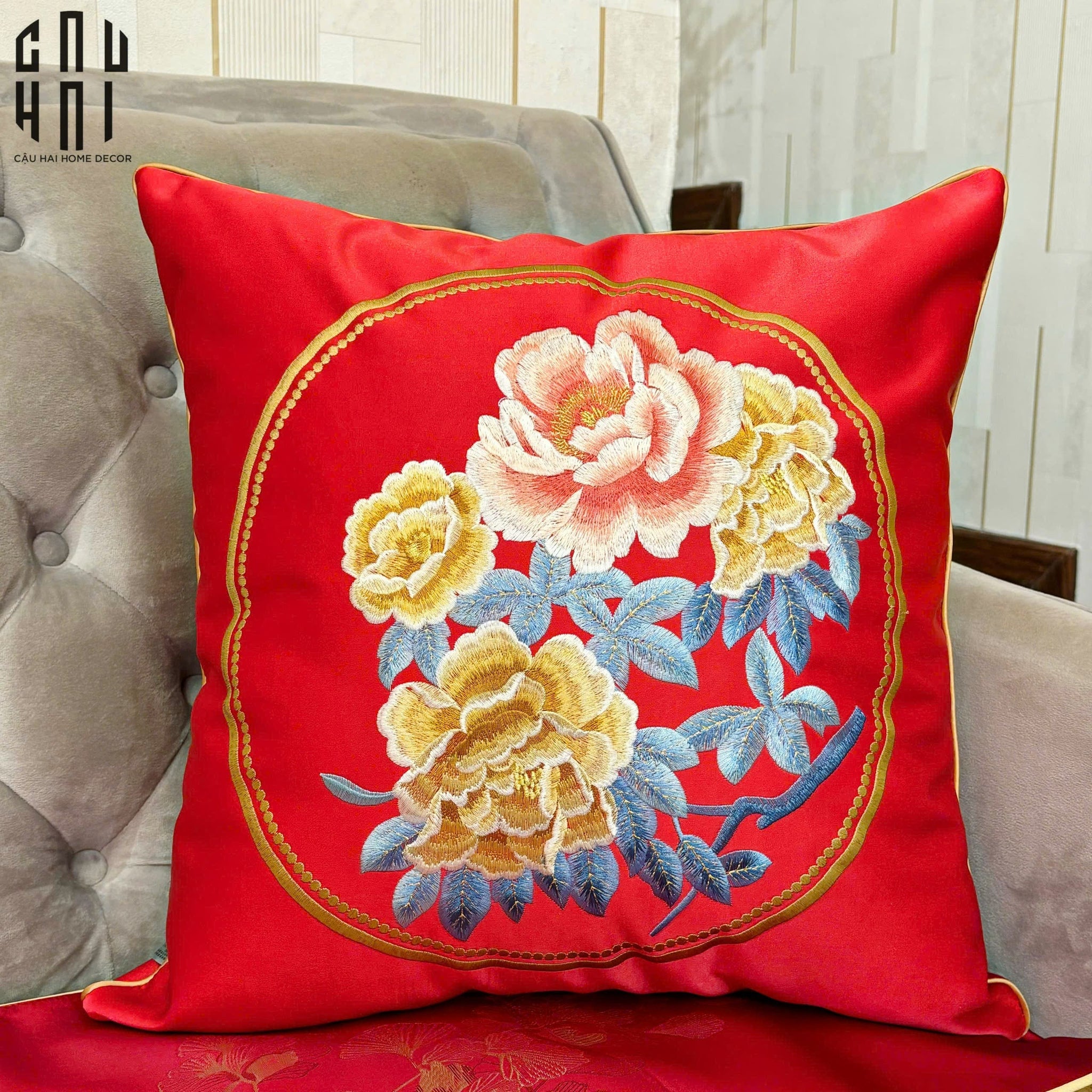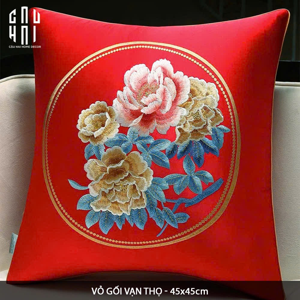 SOFA PILLOW COVER WITH EMBROIDERED FLOWER PATTERN 45X45CM