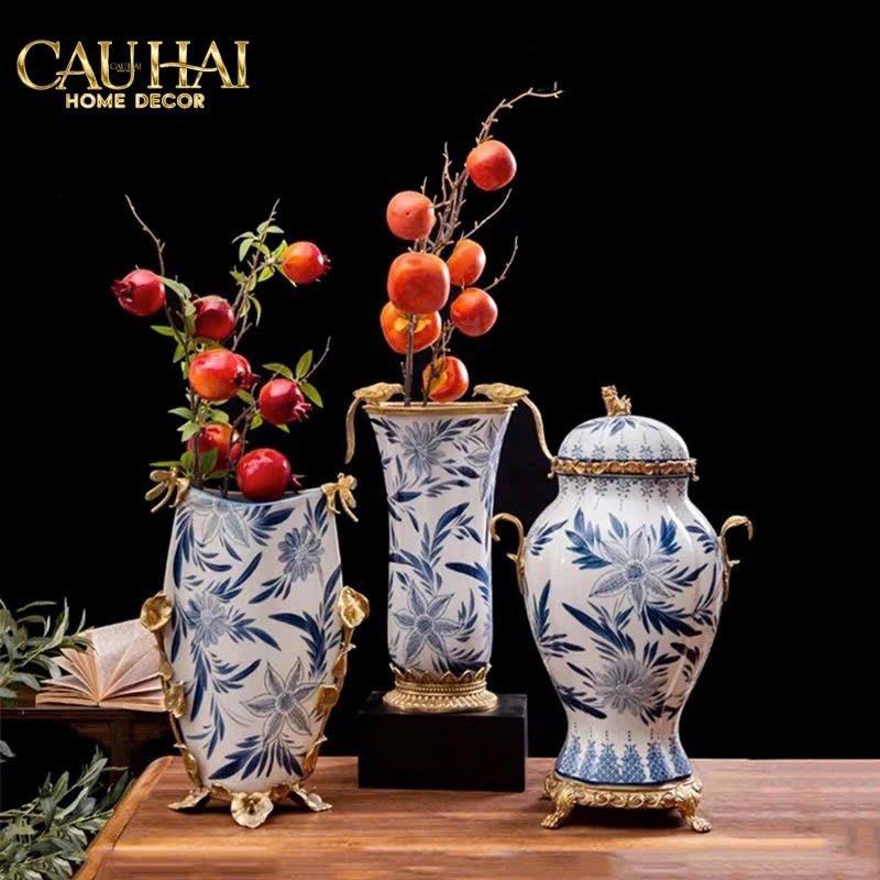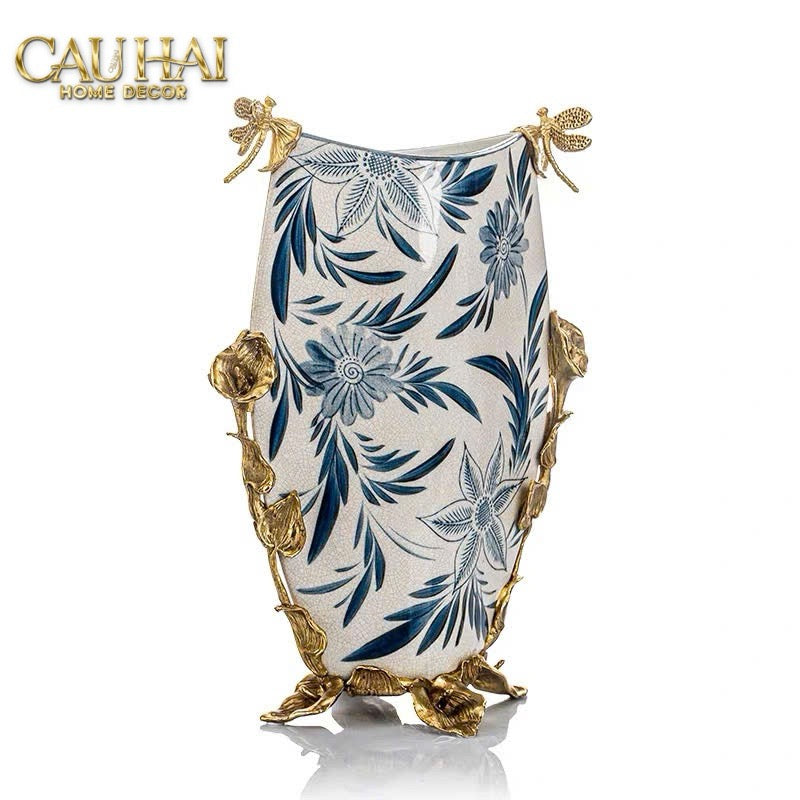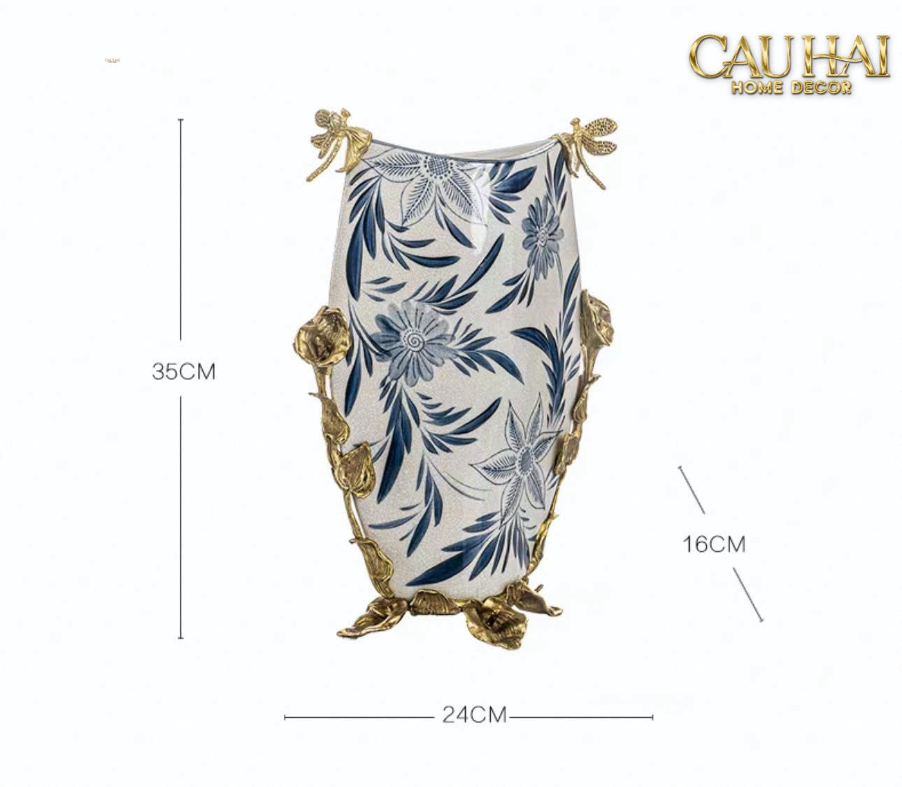 Maison Couture - Bình Hoa Imperium Empire Divine Vase - Dragonfly Horizon Urn Indochine Bleu H35x24x16