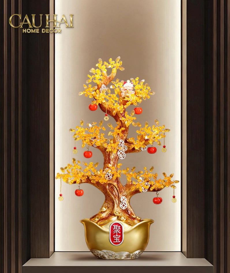 Tết Couture - Cây Hồng Đính Pha Lê Vàng - Đại Tam Nguyên - Jewelry Persimone Forturne Tree 40x93