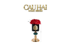 Chất liệu/Màu sắc: Hoa hồng màu đỏ thắm bọc sáp cao cấp với khả năng lưu giữ và khuyếch tán mùi hương khi nhỏ tinh dầu hoặc xịt nước hoa. Lá xanh tự nhiên. Chậu sắt dán label mạ nhôm mang dấu ấn decor signature của Cậu Hai Home Decor, bề mặt mịn sang trọng. Đất trang trí moss xanh tự nhiên.
