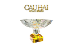Chân đế pha lê màu amber vàng kim không chỉ mang lại sự ổn định mà còn tạo điểm nhấn thẩm mỹ ấn tượng. Gam màu vàng ấm kết hợp viên pha lê cắt mặt kim cương tạo nên vẻ đẹp xa hoa nhưng tinh tế.