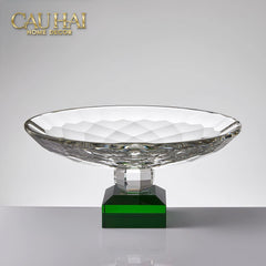 Mỗi đường cắt trên bề mặt pha lê được thực hiện thủ công bởi nghệ nhân tài hoa, tạo nên hiệu ứng khúc xạ ánh sáng độc đáo. Kỹ thuật này biến chiếc đĩa thành tác phẩm nghệ thuật phản chiếu vẻ đẹp của không gian.