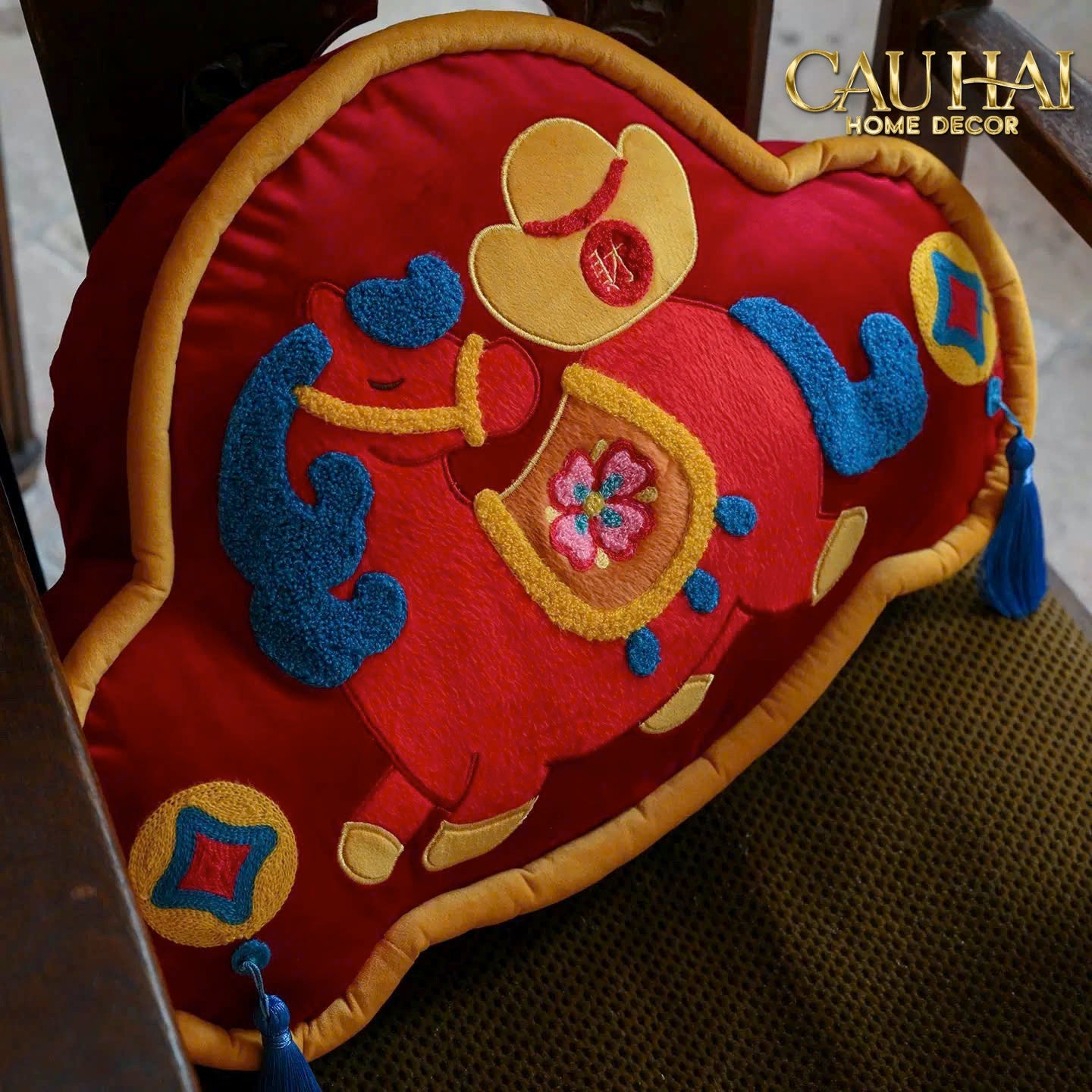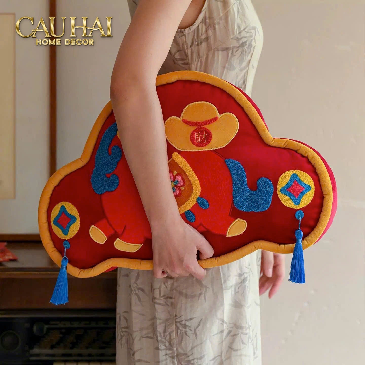 Tết Couture - Gối Lân Hỷ Khoá Trường Thọ 30x50
