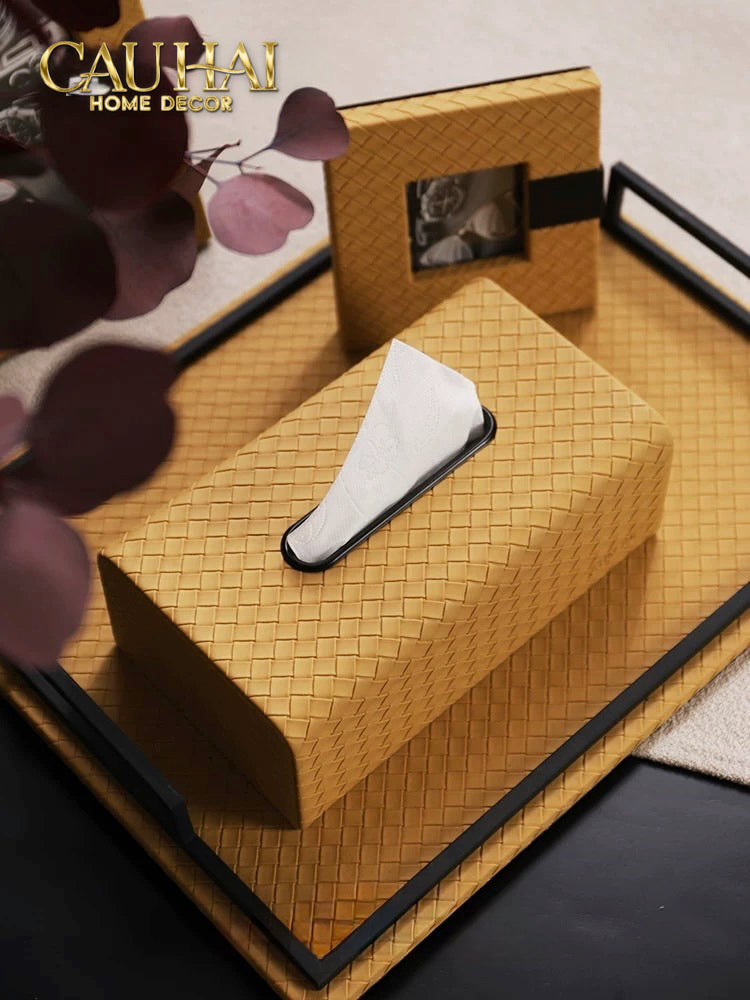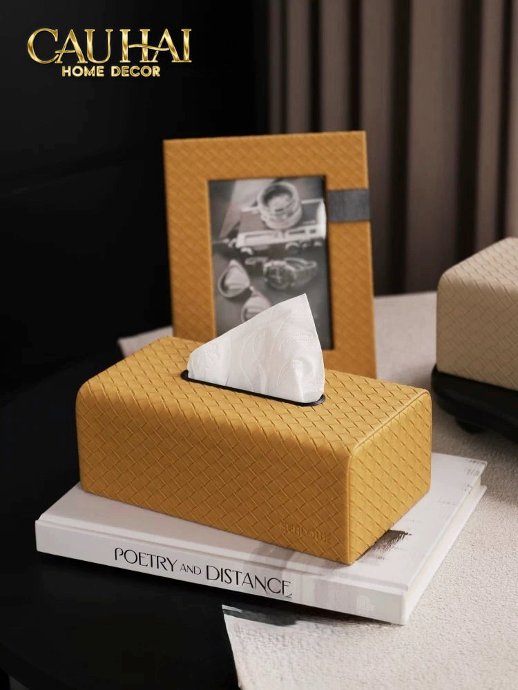 Hộp Khăn Giấy Da Intrecciato Woven Leather Ebène Brown