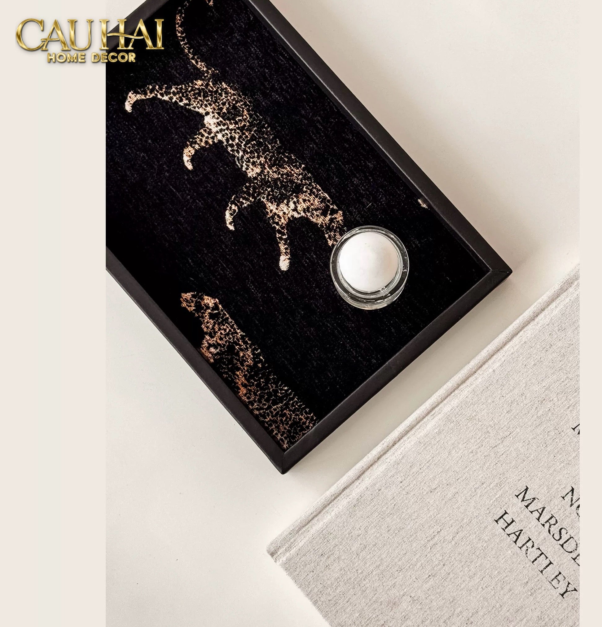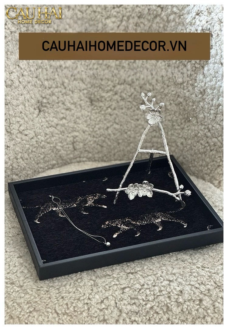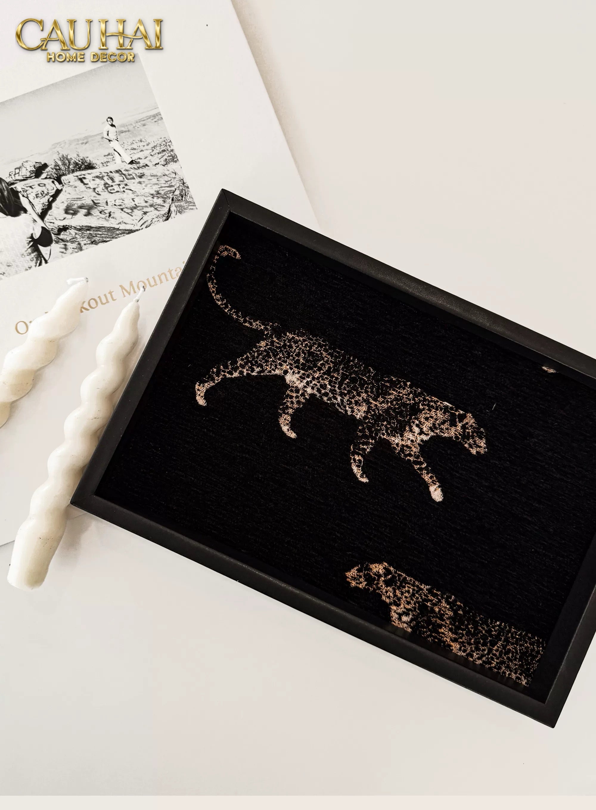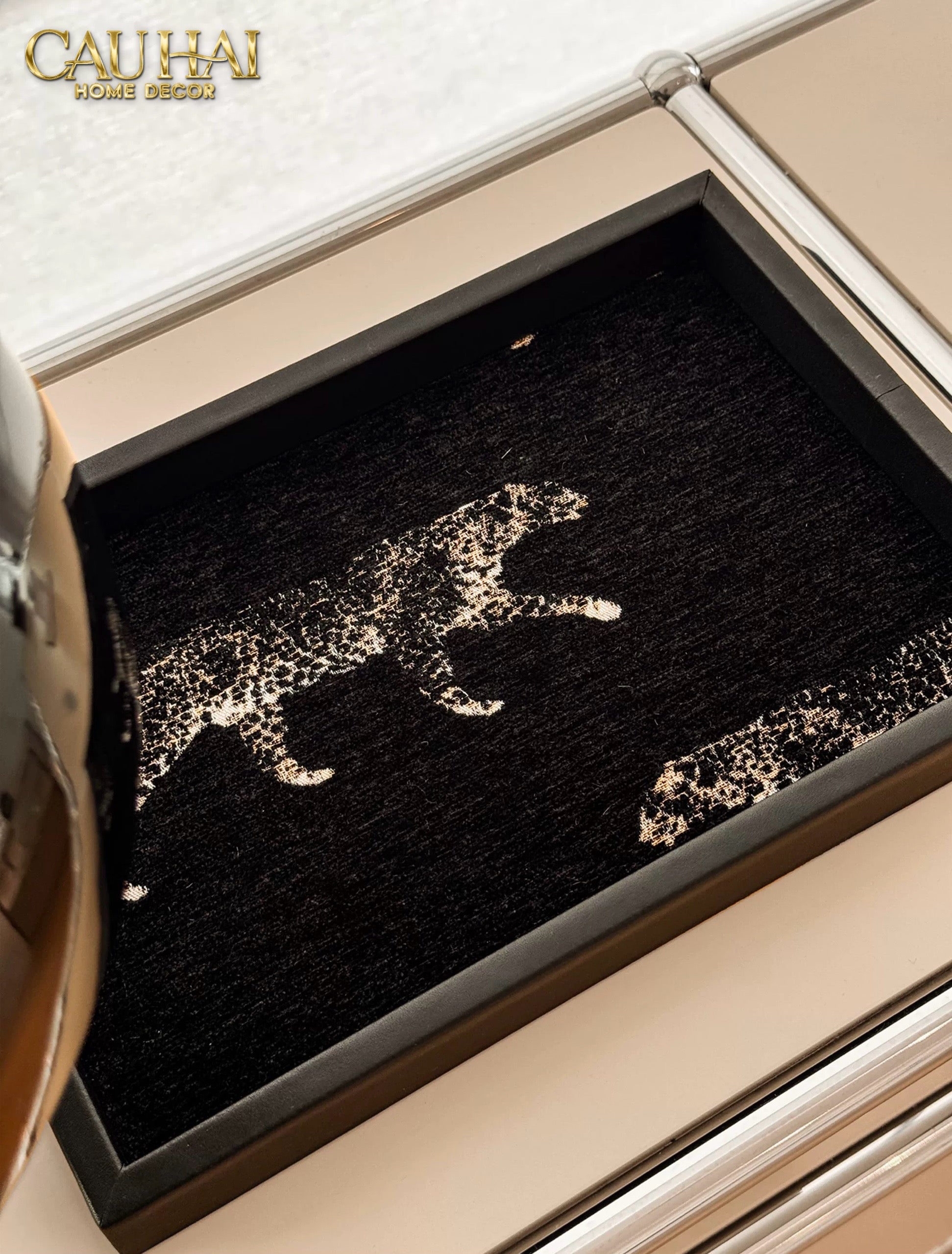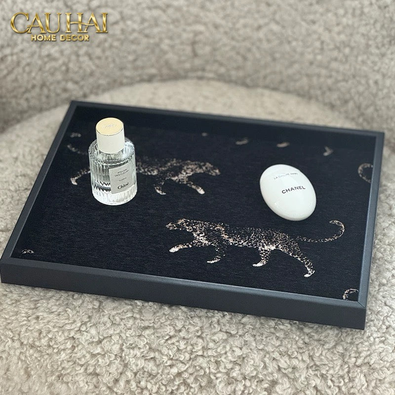 KHAY GỖ TWEED LUX LEATHER NOCTURNAL PANTHER 30X40