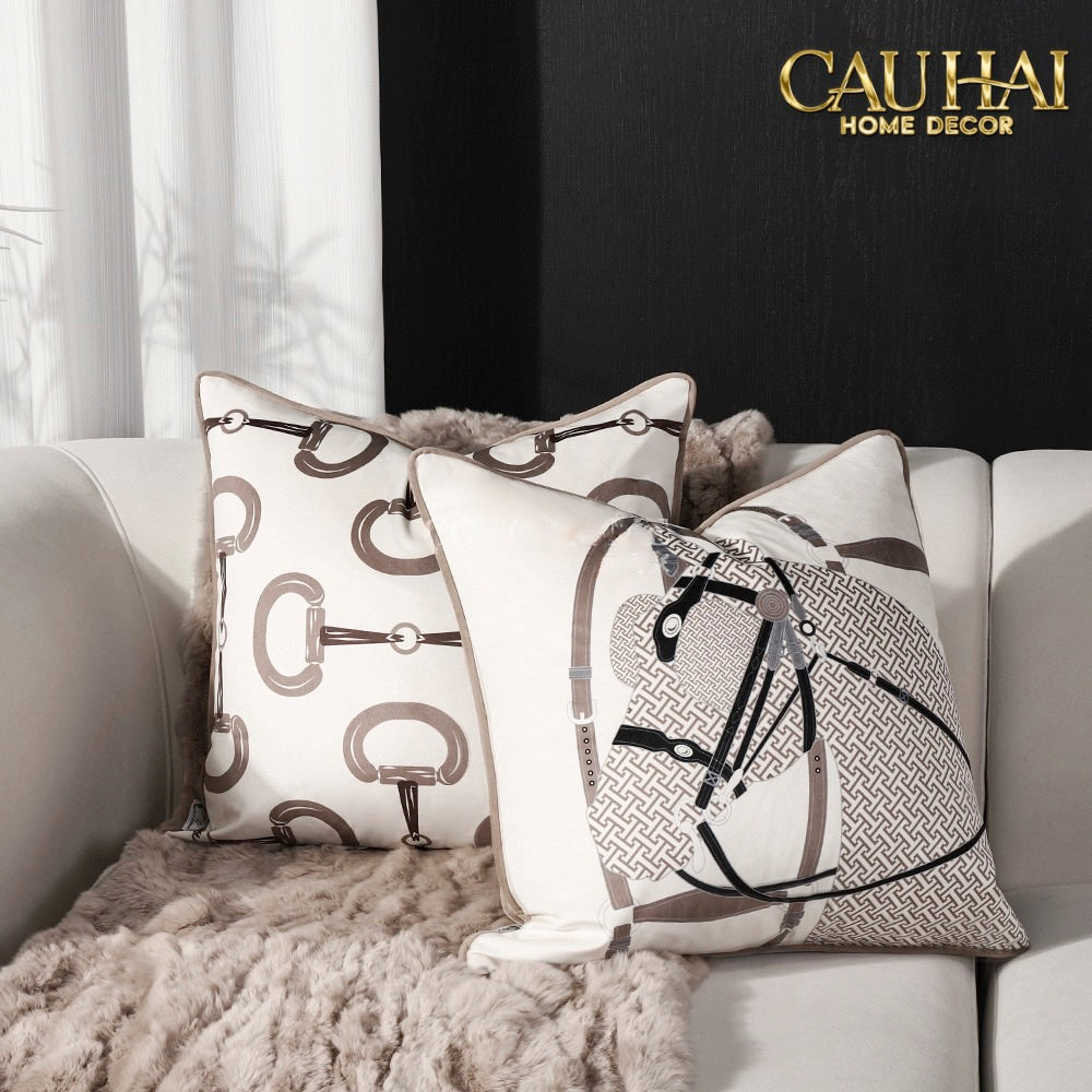 Vỏ Gối Nhung Equestrian Étrier d’Élite Blanche 45