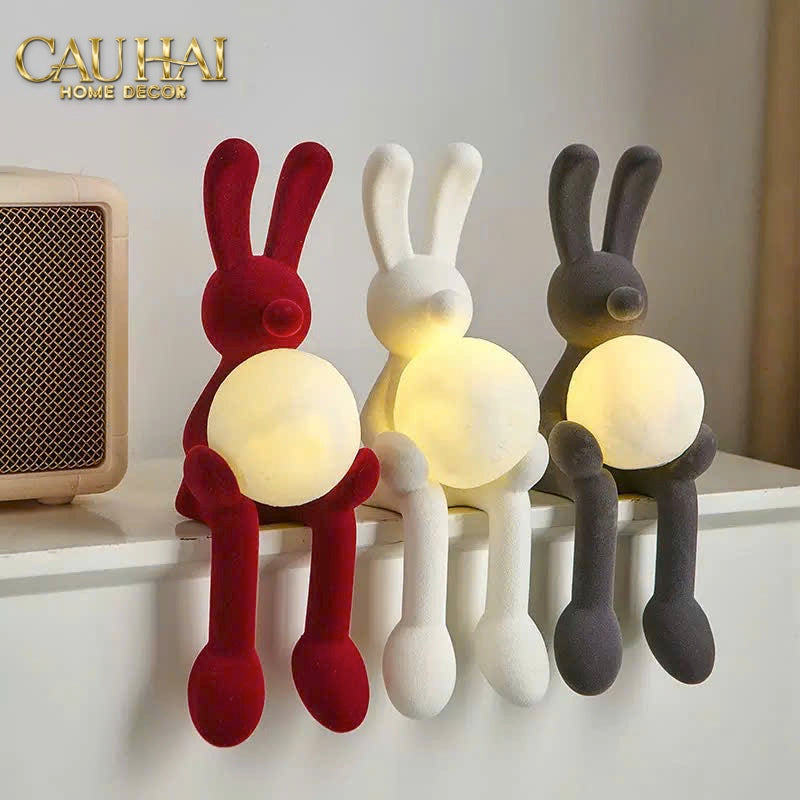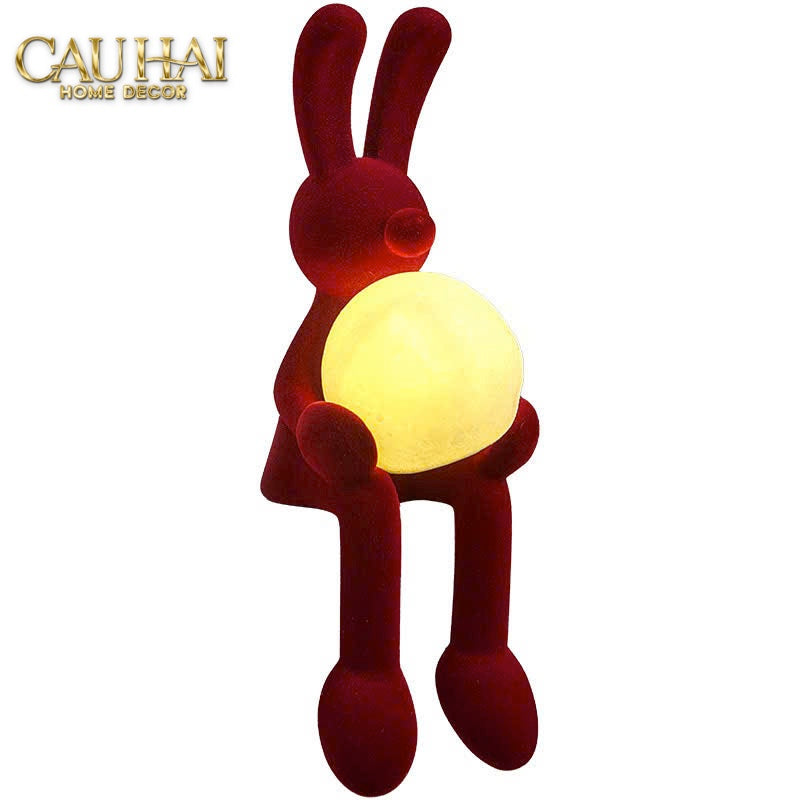 Tượng Thỏ Nhung Đỏ Moonlight Rouge Velour  Lapin Sculpture Lamp 8.5x26.5