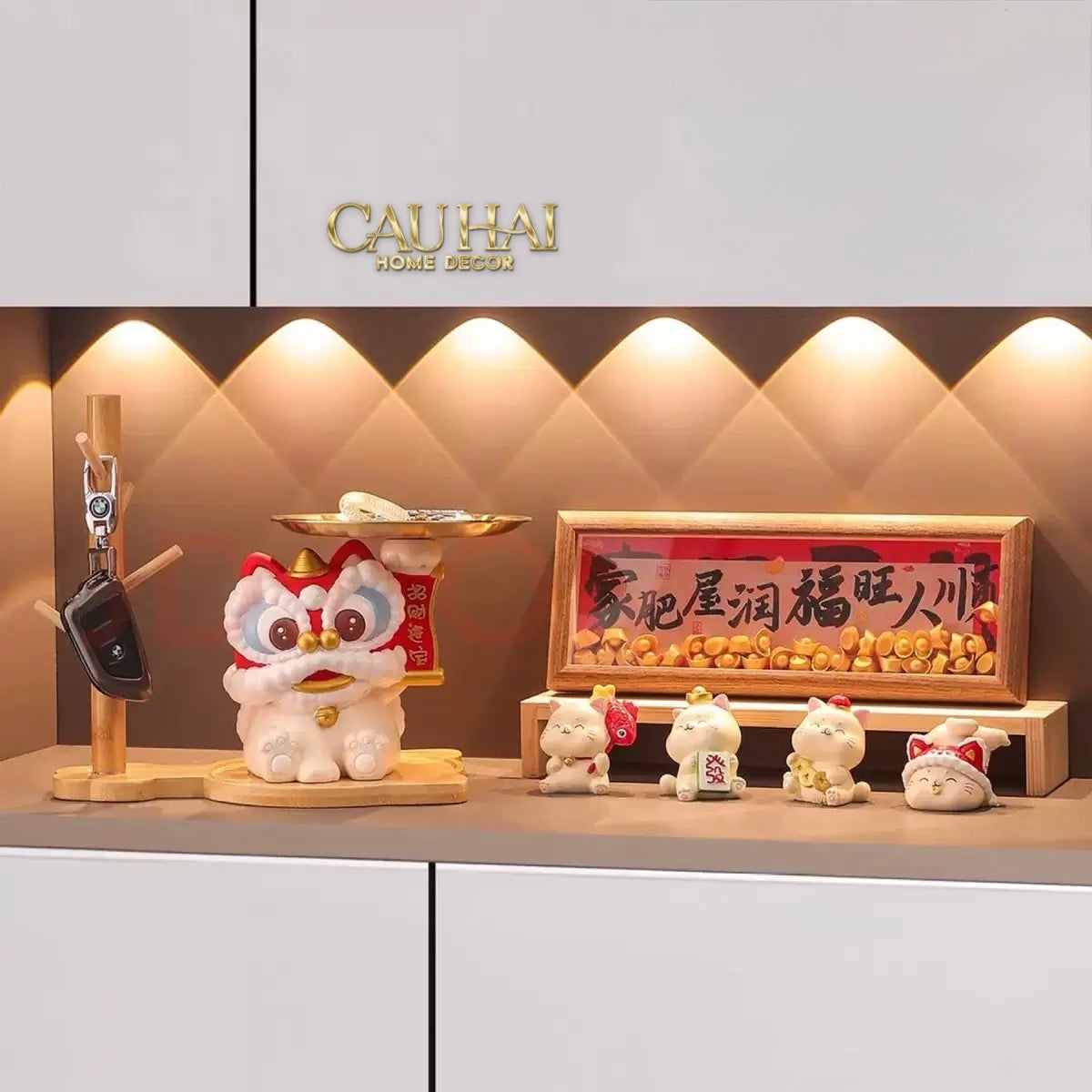 Tết Couture - Tượng Kim Lân Phúc Mãn Đường Guardian Lion Key Figurines Hanging Tree