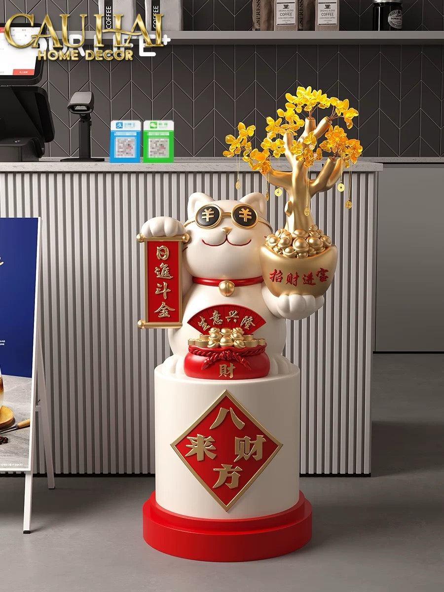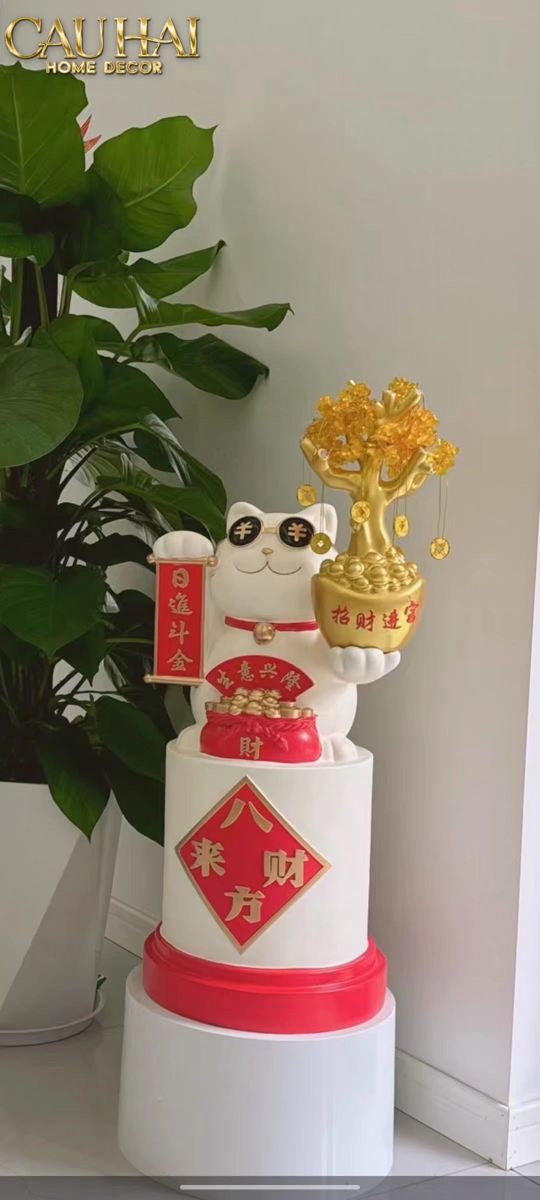 Tượng Mèo Đại Cát Lợi Cây Phú Quý 84cm