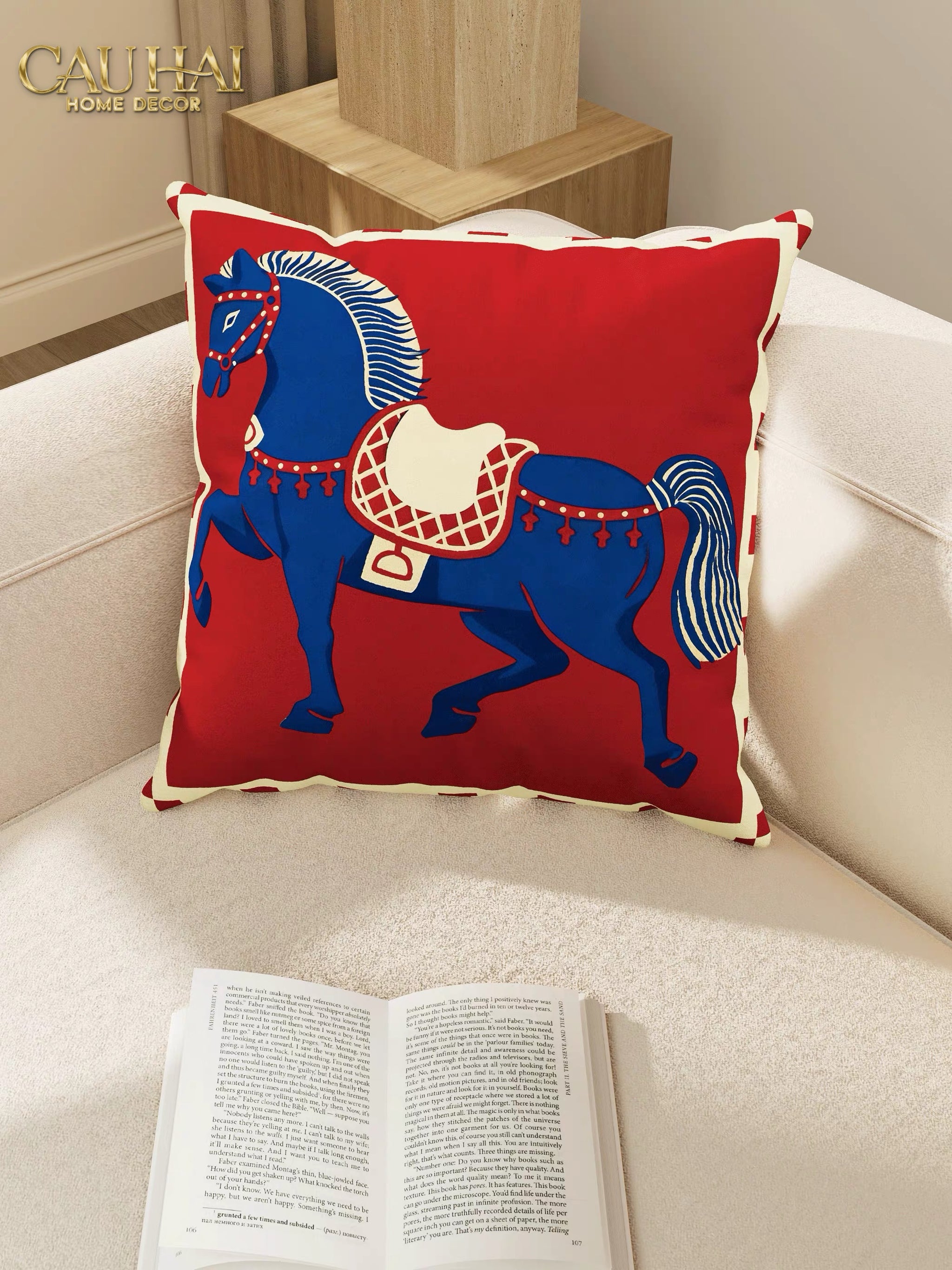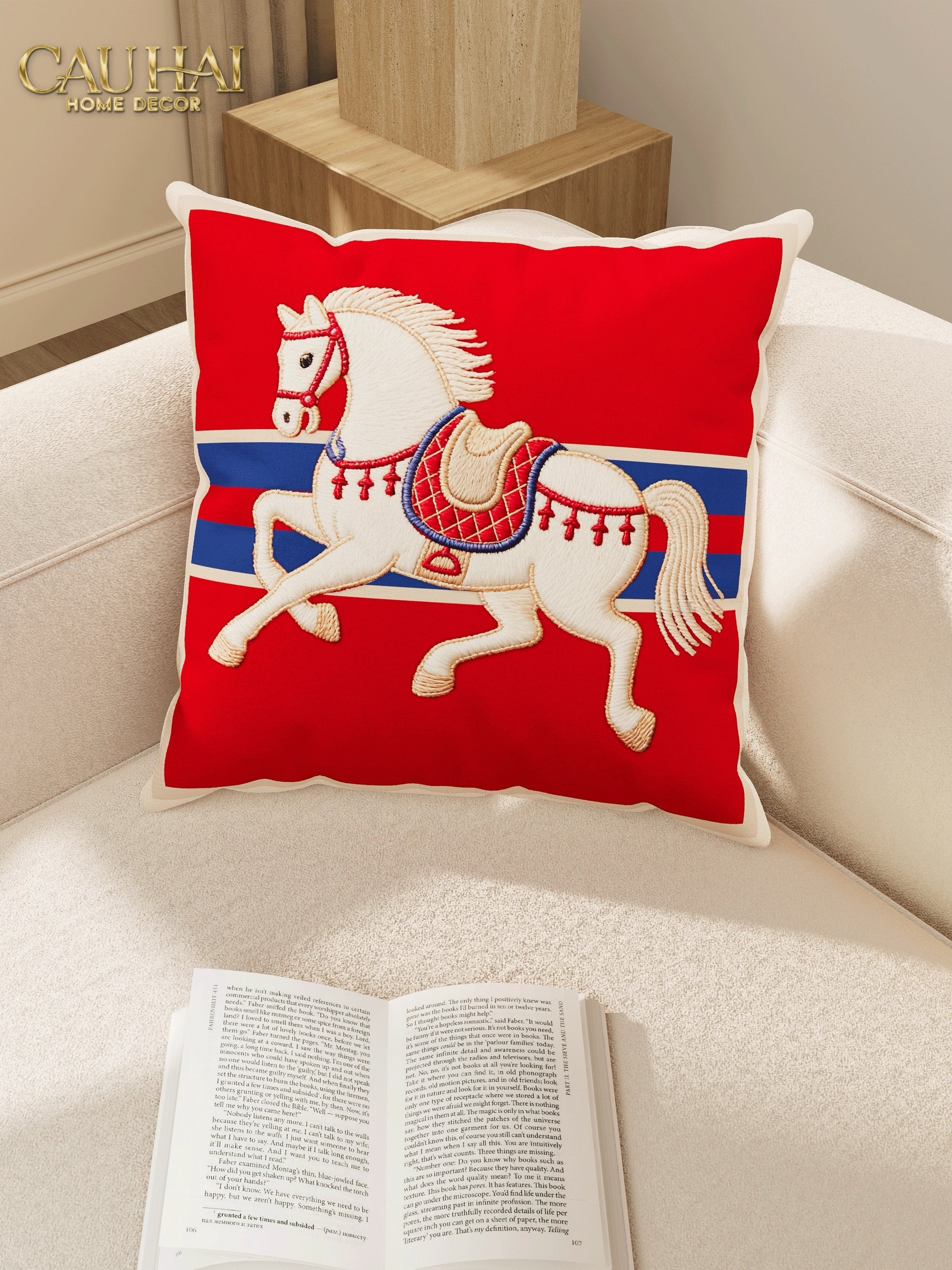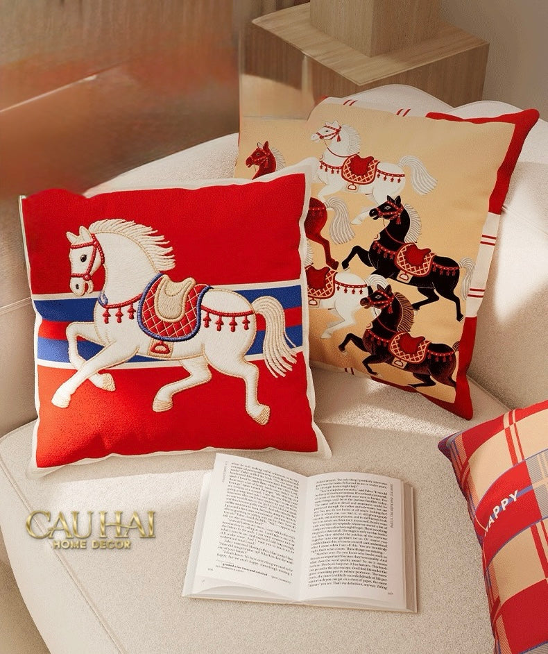 Tết Couture - Vỏ Gối Nhung Équestre Les Cinq Chevaux Royaux 45