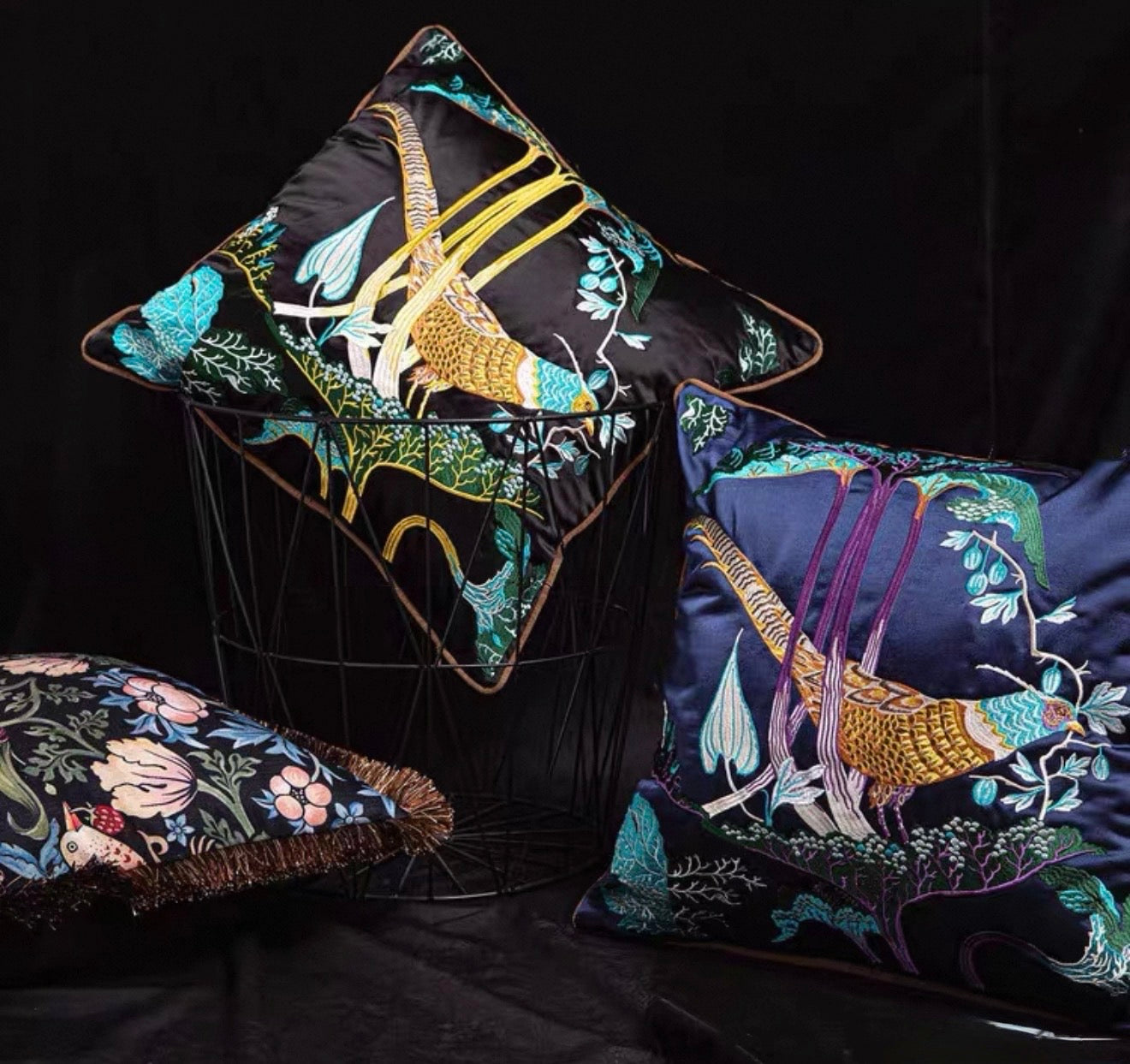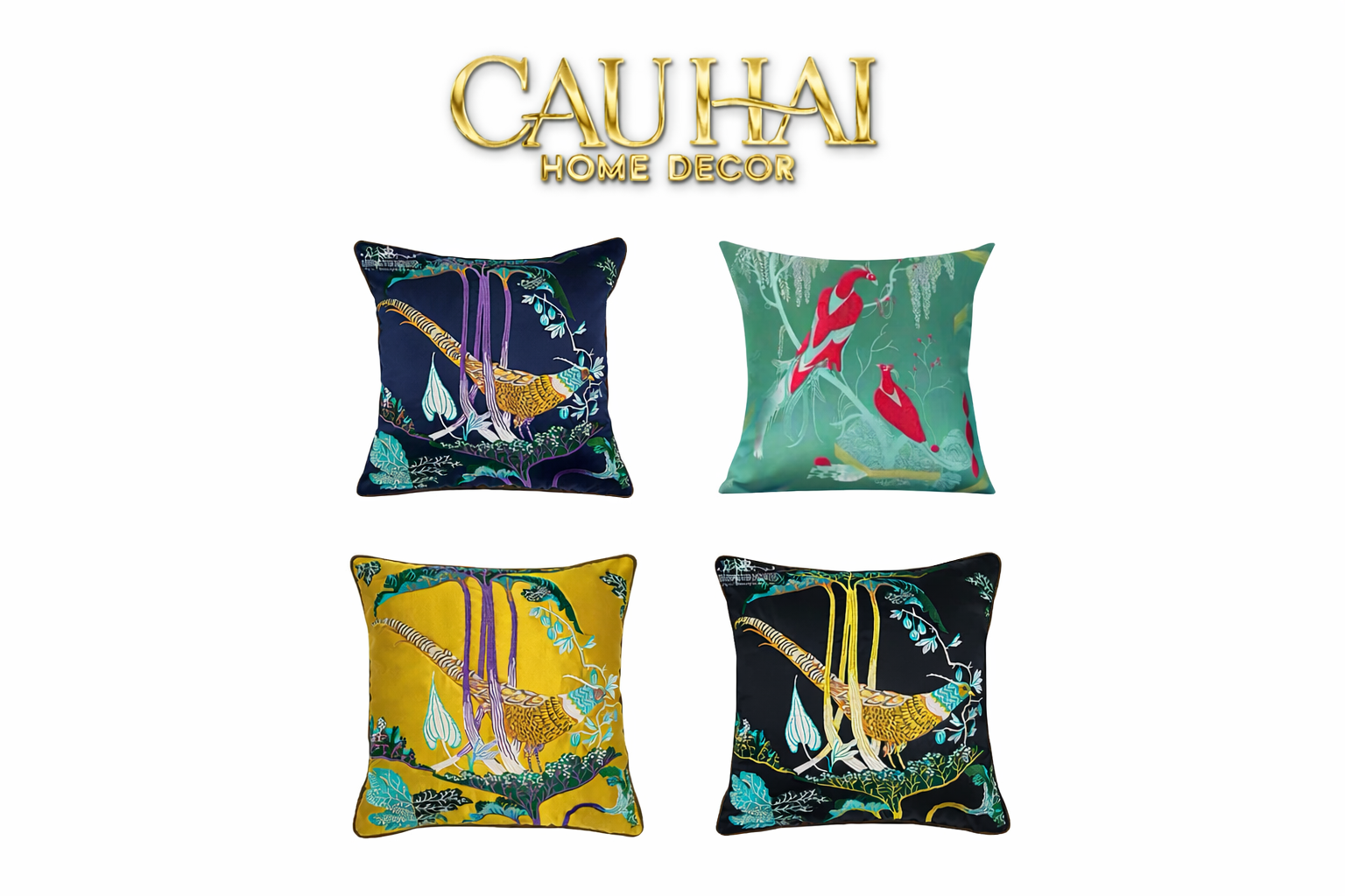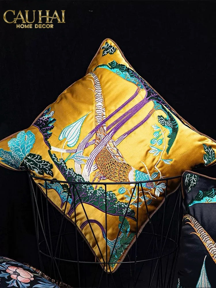 Tết Couture - Vỏ Gối Lụa Thêu 3D  Hoàng Điểu Tứ Quý - Minh Hoàng 45