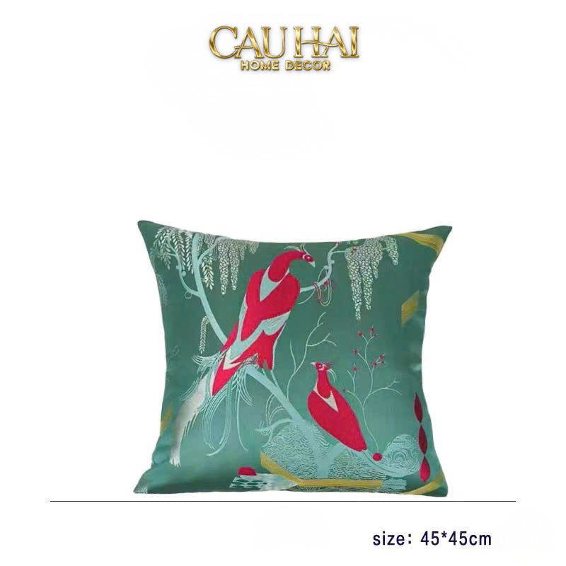 Tết Couture - Vỏ Gối Lụa Thêu 3D Hoàng Điểu Tứ Quý - Minh Hoàng 45