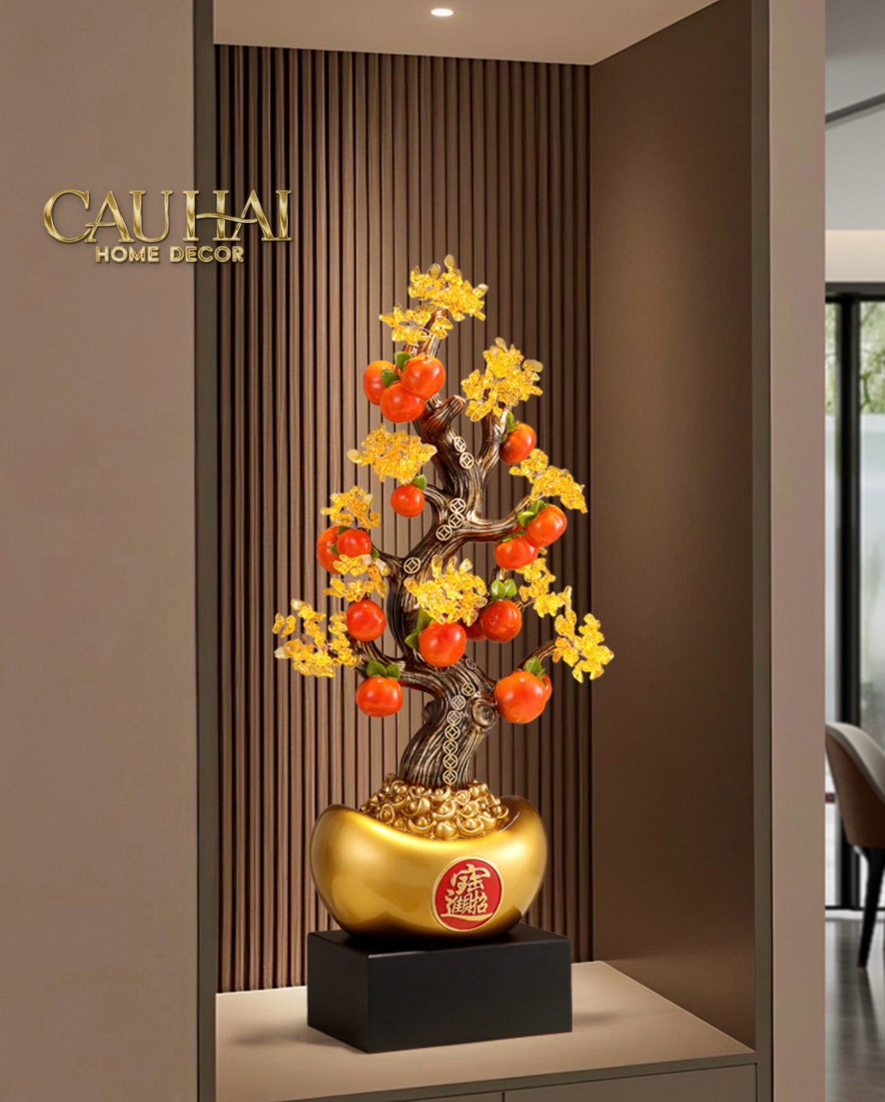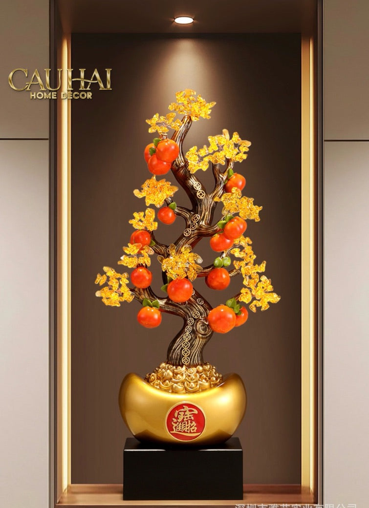 Tết Couture - Cây Hồng Đính Pha Lê Vàng - Đại Tứ Hỷ - Jewelry Persimone Fortune Tree 85x38