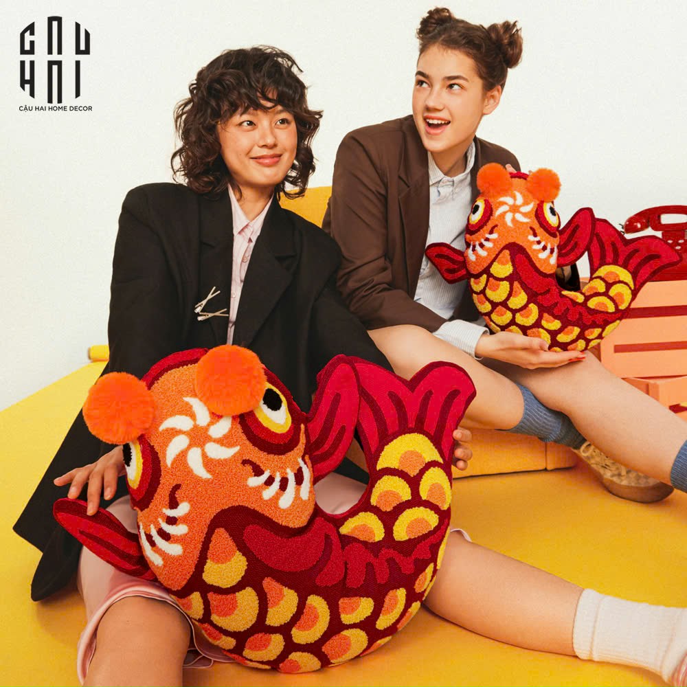 Tết Couture - Gối Cá Chép Vũ Môn - Kim Lý Hoá Long Art Cushion