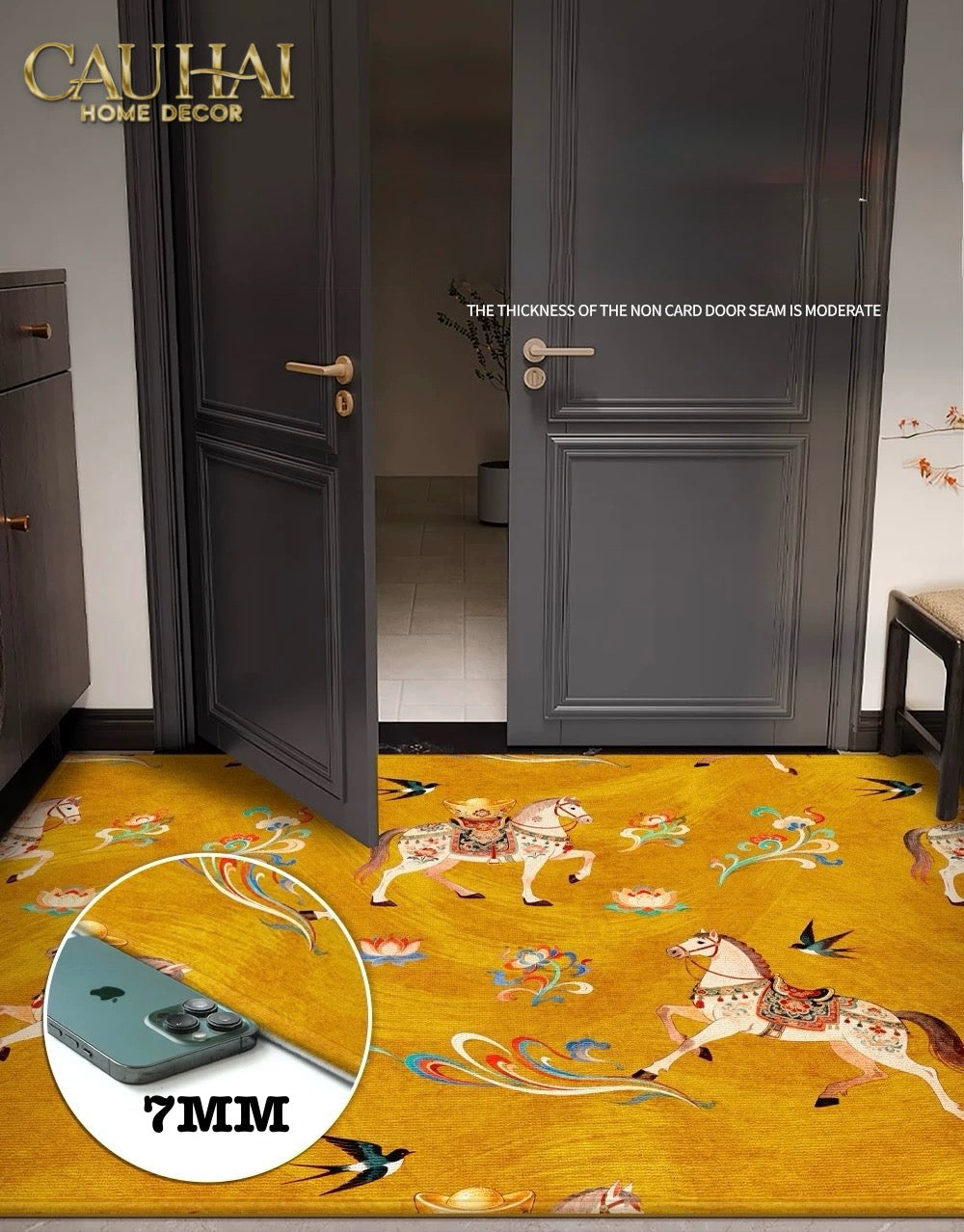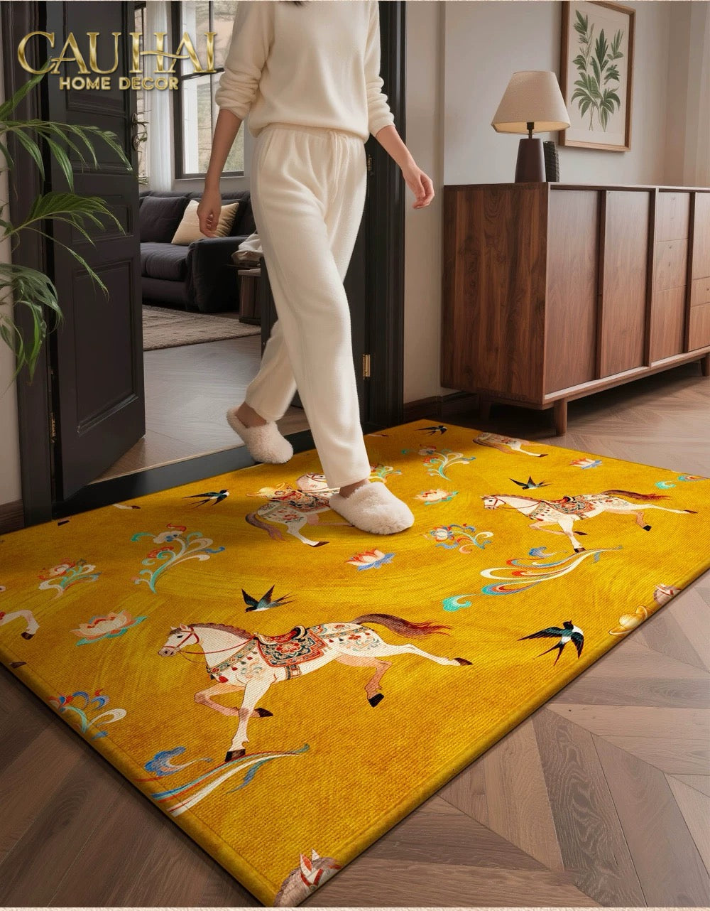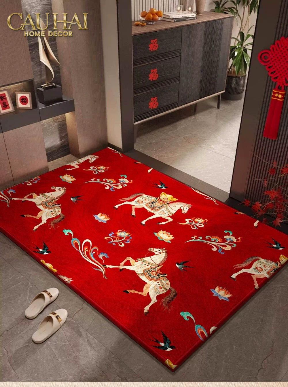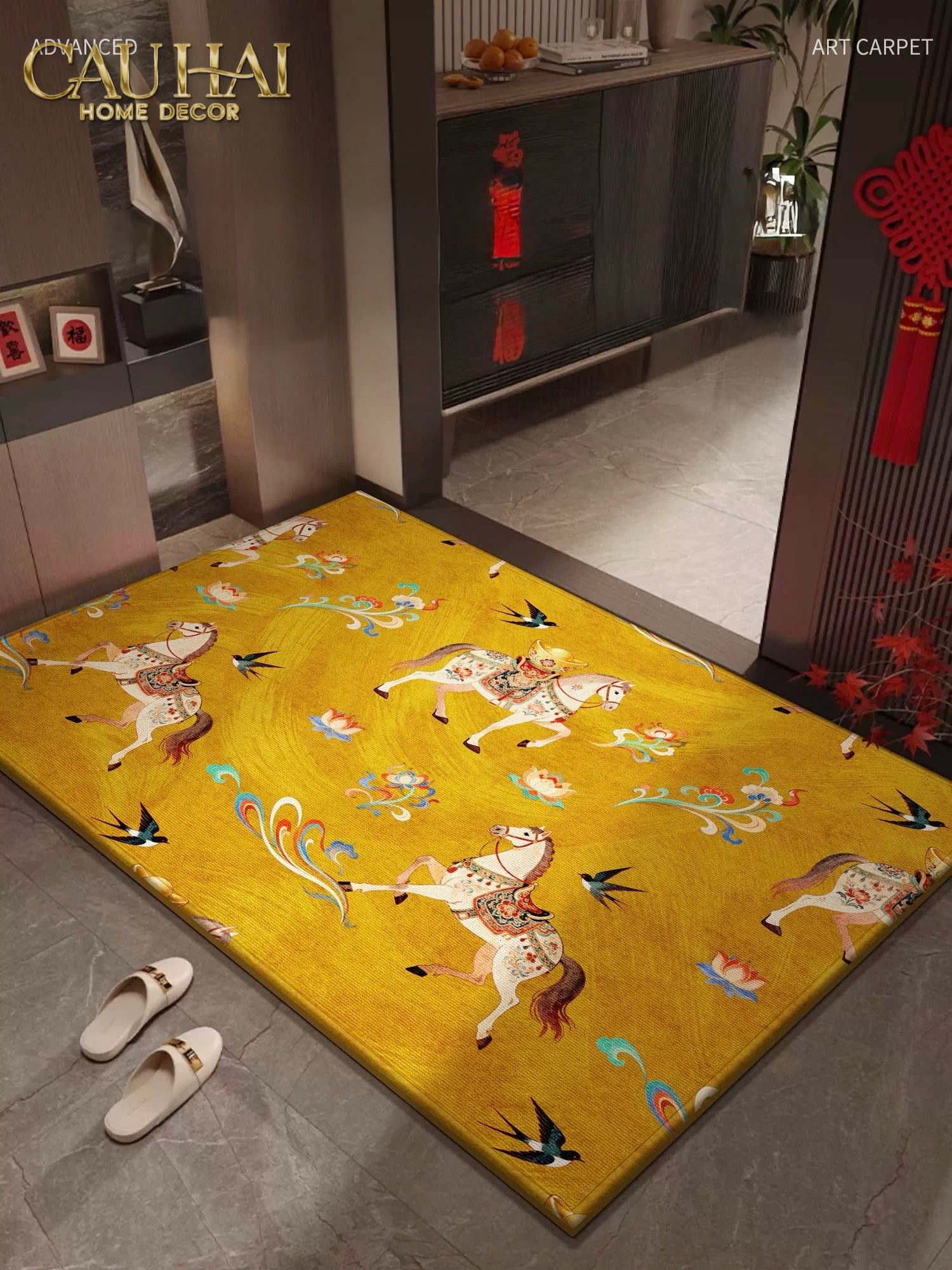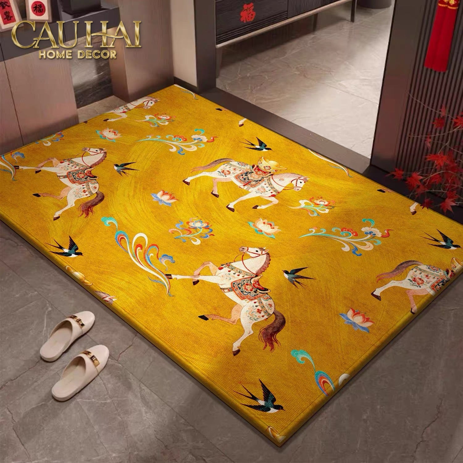 Thảm Cửa Nhung Bỉ 80x100 - Kim Mã Tam Bảo - Triptyque Fortune Chevaux