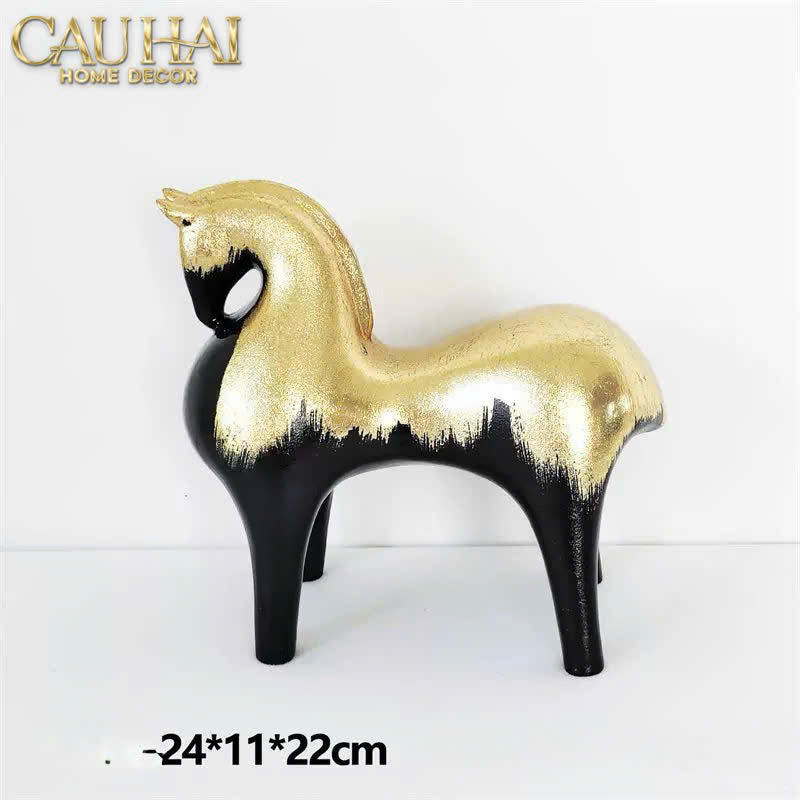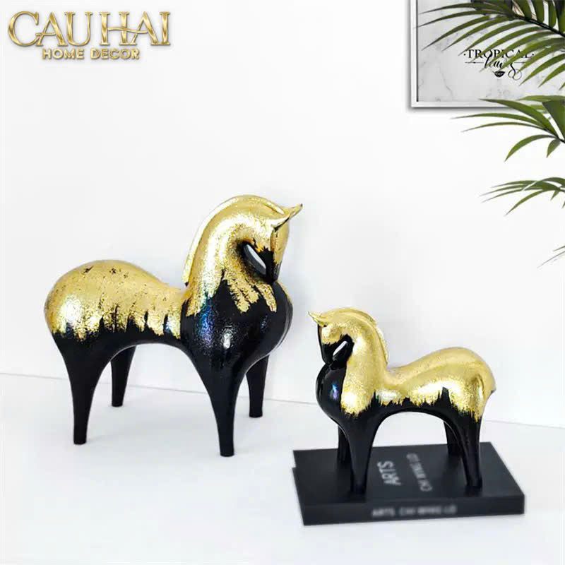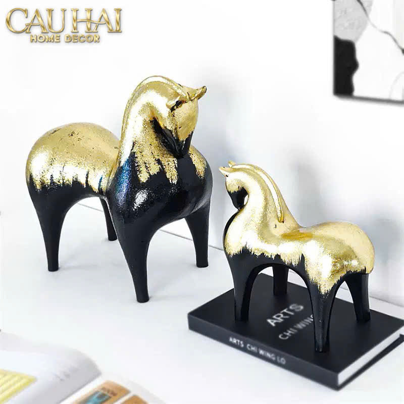 Maison Couture - Tượng Ngựa Gốm Mun Mài Dát Vàng Noir Laqué Feuille d’Or Tang Horse H24/H36
