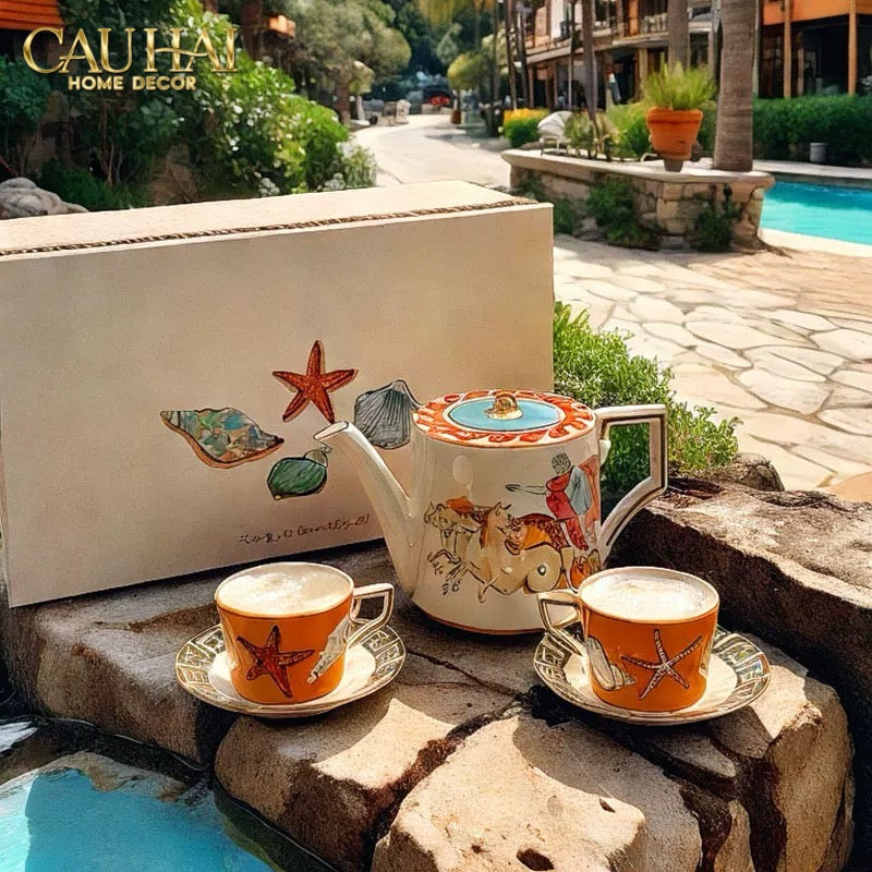 HOME COUTURE - SET BÌNH TRÀ 5 PCS RC. GINORI LABIRITO VERDE FULLBOX