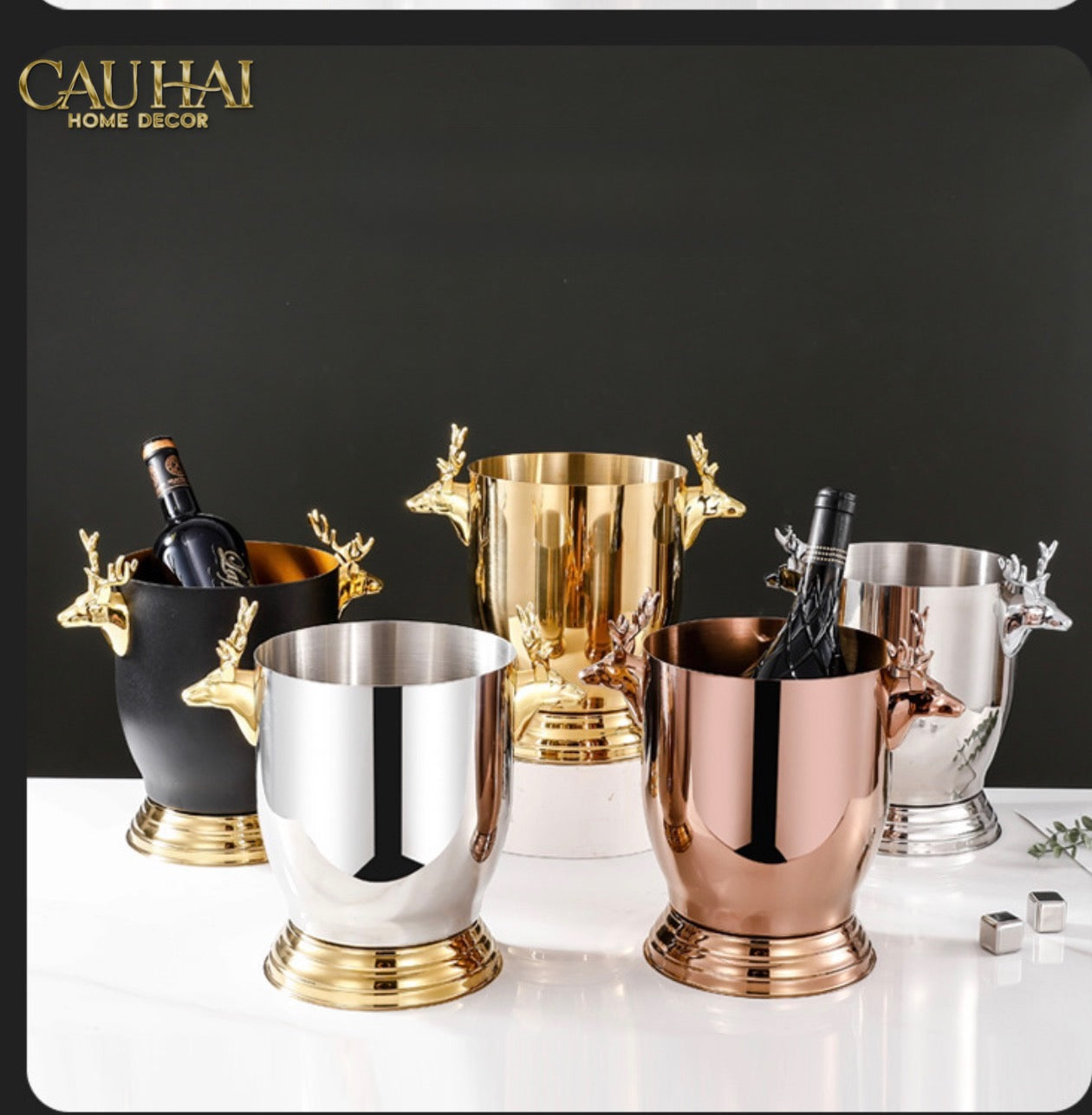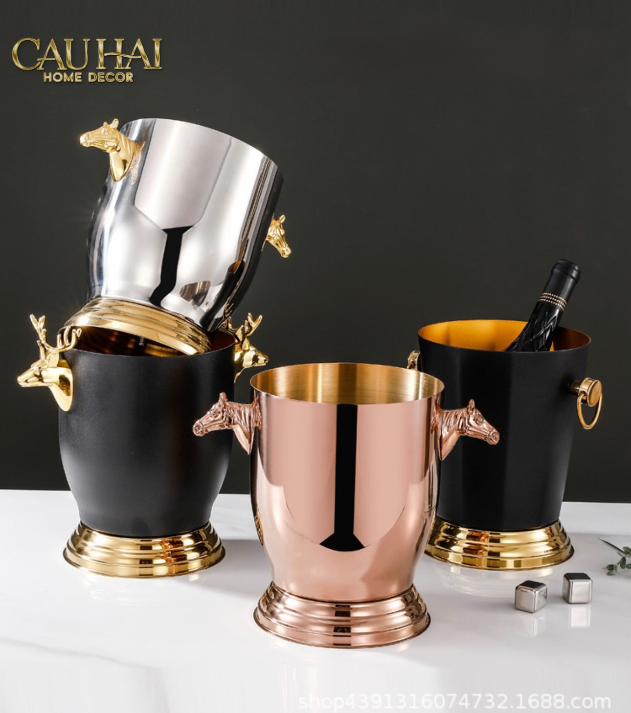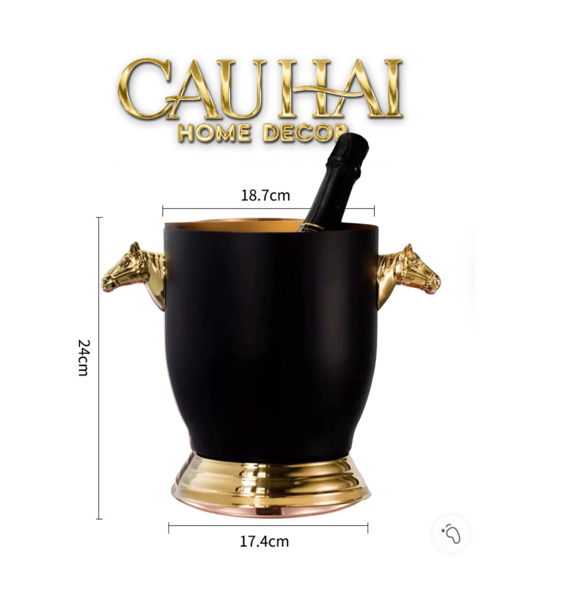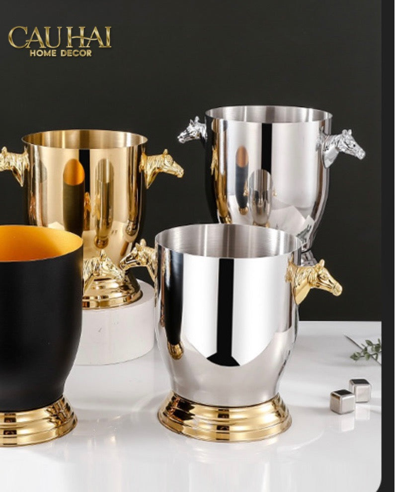 Maison Couture - Xô Đá Ướp Vang Bản Đen Gold - Malta Golden Horse Équestre Ice Bucket - Noire Gold 6L 18x24